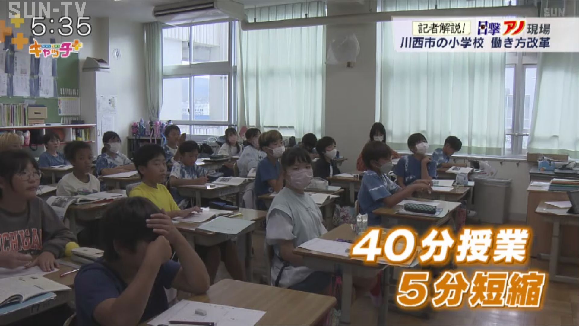 給食を挟まず、一気に午前中5時間授業。しかし、給食開始時間は以前より5分後ろになっただけです。