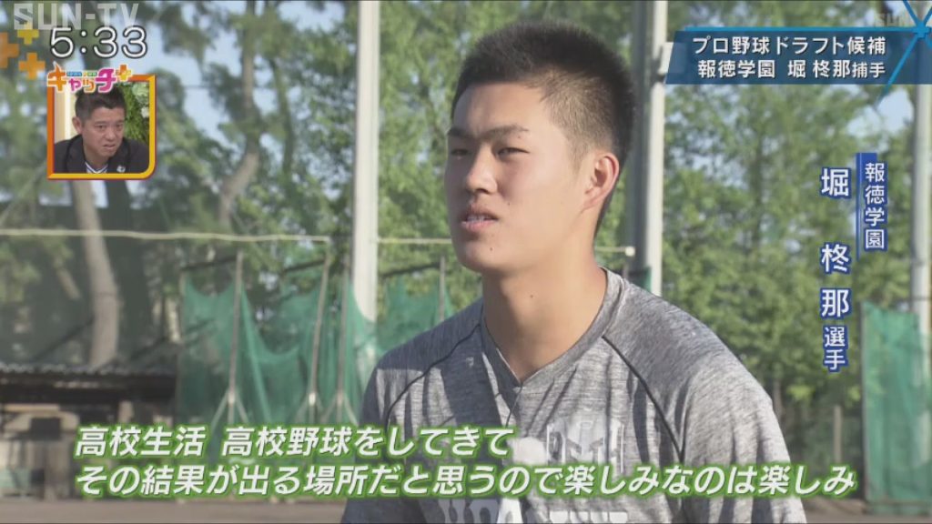 堀選手は神戸市立鷹取中学校を卒業後、名門・報徳学園に進学。1年の秋からレギュラーとなり、キャプテンとして出場したことし春のセンバツでは、準優勝に貢献しました。