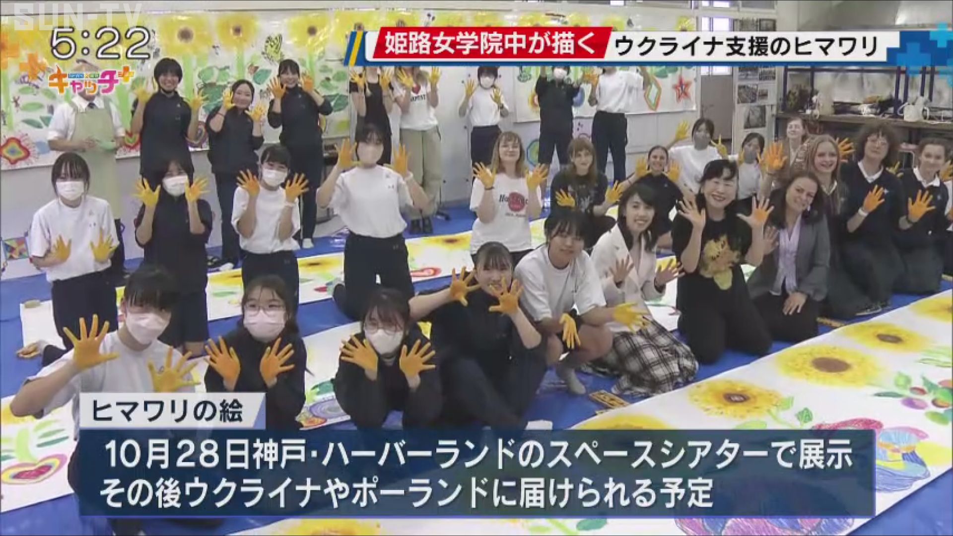 完成したヒマワリの絵は、10月28日、神戸・ハーバーランドのスペースシアターで展示された後、ウクライナやポーランドに届けられるということです。