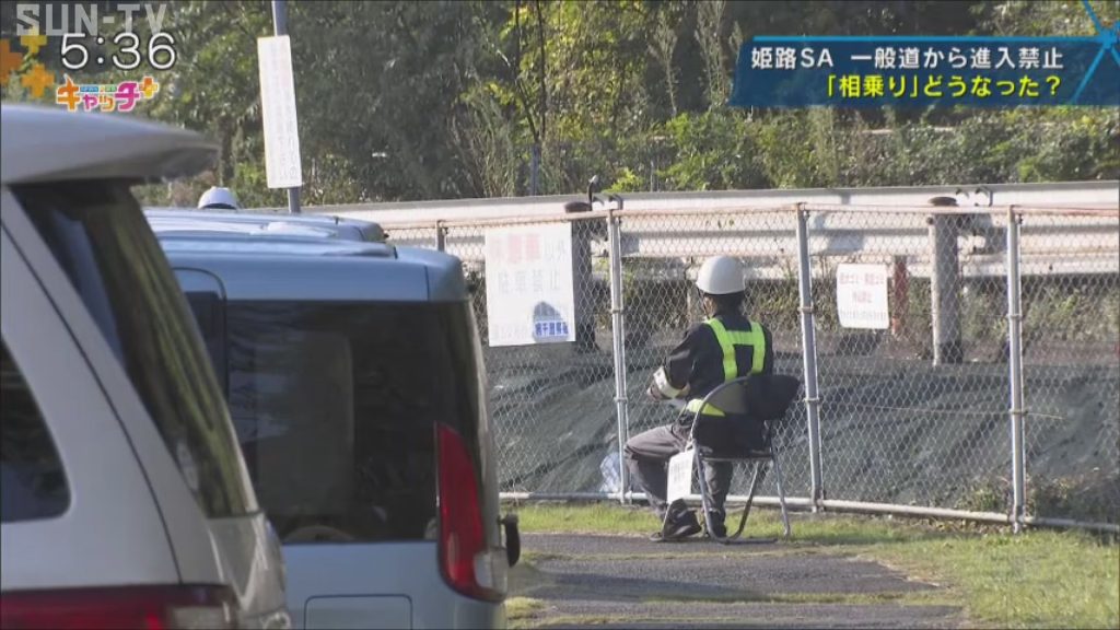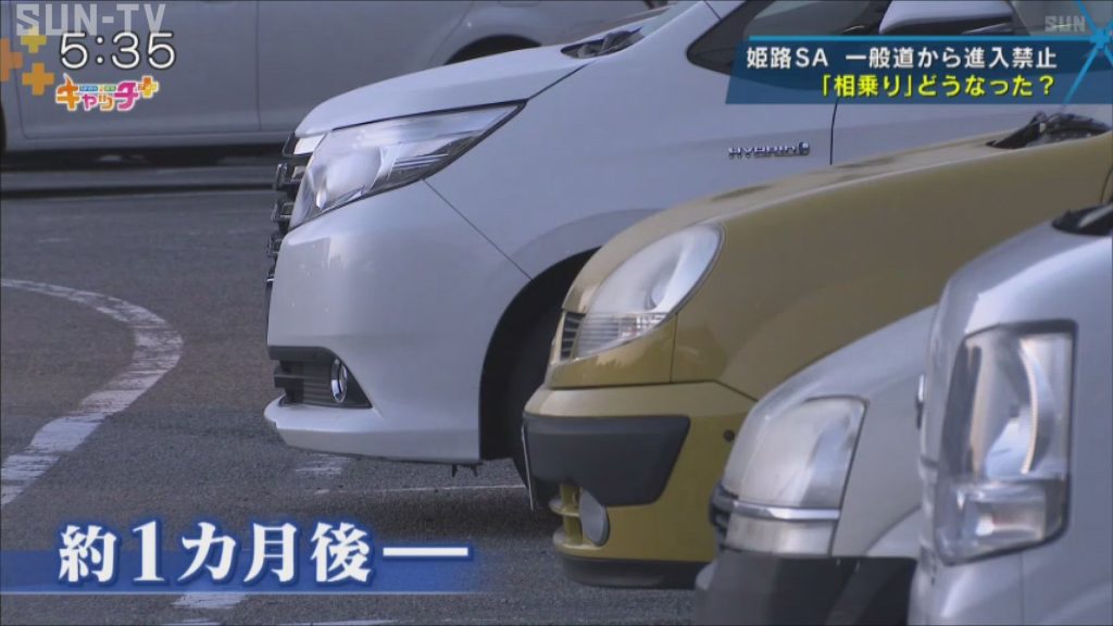 一般道からの進入が禁止となり、明らかに数が減った姫路サービスエリアでの「相乗り」。