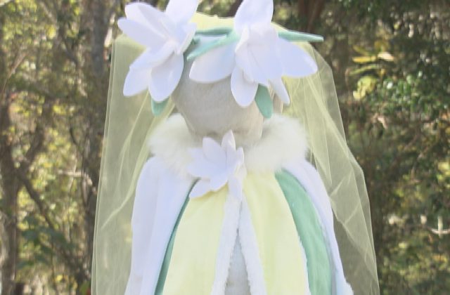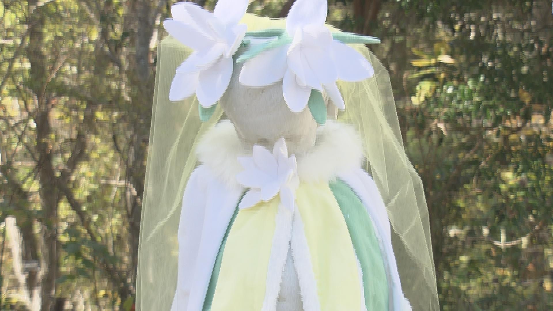 六甲高山植物園の小便小僧へ「エーデルワイス」をテーマにマント着用