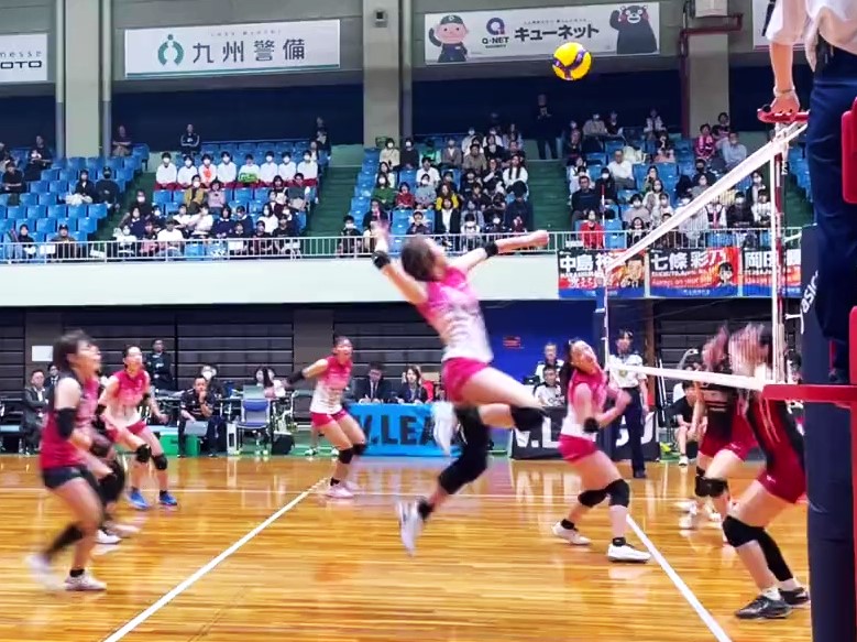 スパイクを打つ6荒谷栞/熊本県立体育館(提供:ヴィクトリーナ姫路)