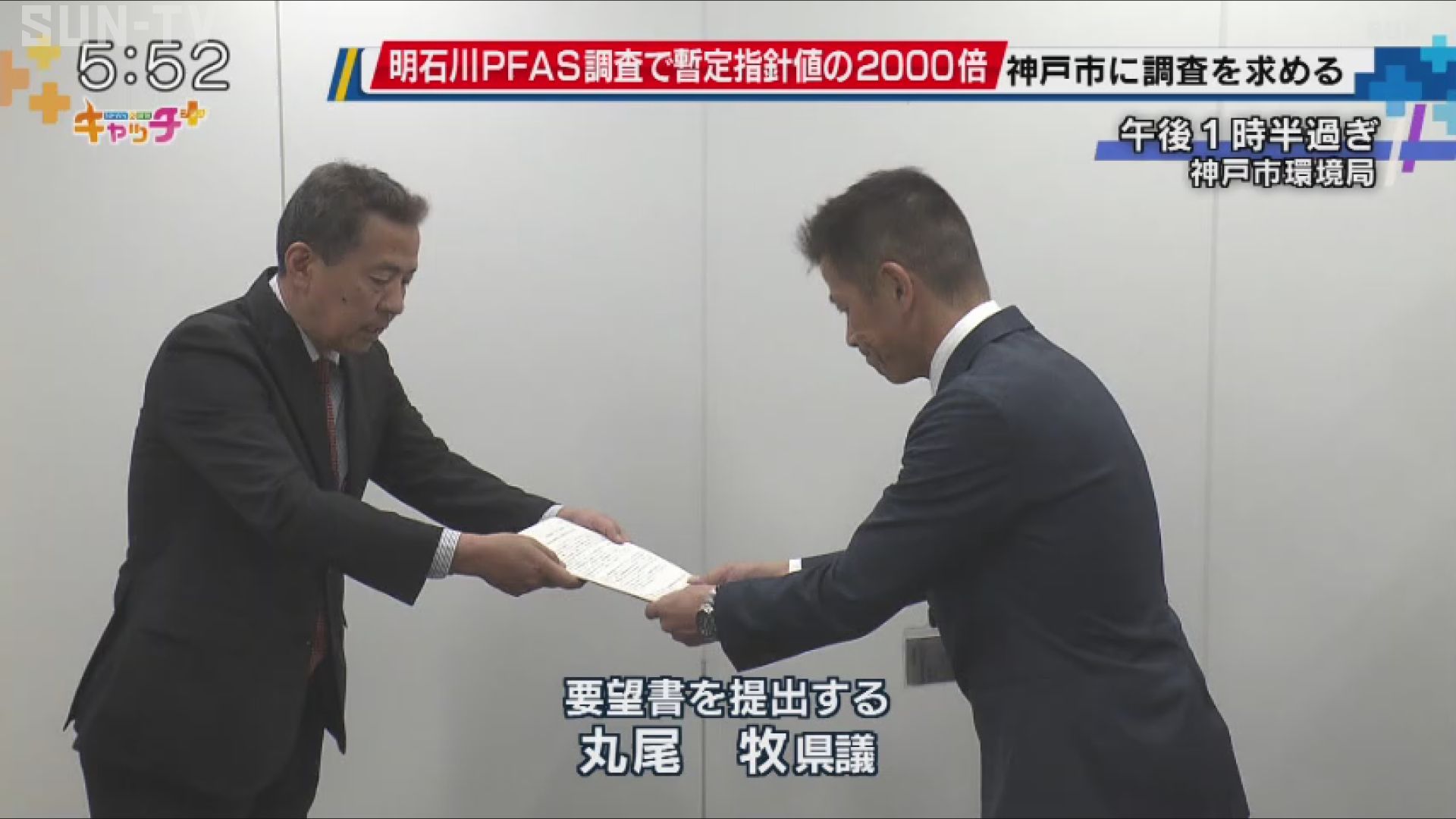神戸市西区を流れる明石川で発がん性などが懸念されている有機フッ素化合物=PFASに関して国の指針値の2000倍にあたる濃度が観測されたとして、独自に調査を行った県議が神戸市に調査と対策を求める要望書を提出しました。
