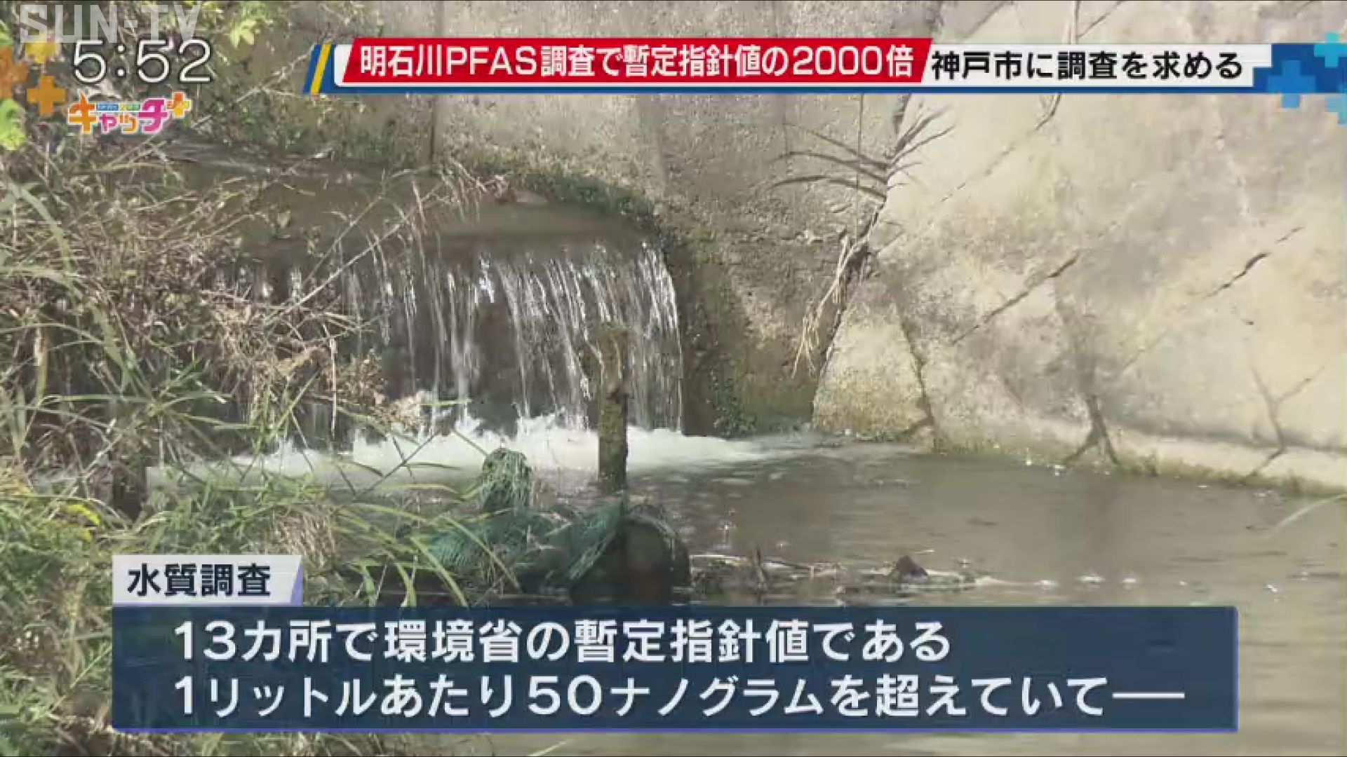 その結果、13カ所で環境省の暫定指針値である1リットルあたり50ナノグラムを超えていて、このうち神戸市西区の1カ所からは暫定指針値の2000倍にあたるPFASが検出されたことが分かりました。