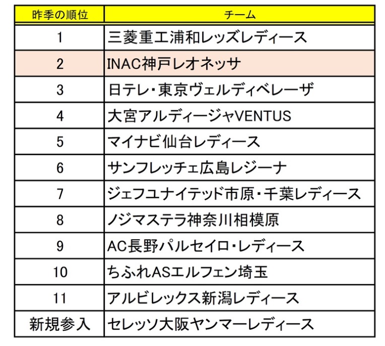 WEリーグは、過去2シーズン11チーム体制が続き、各節1チームは試合がない変則日程だったが、今シーズンからセレッソ大阪ヤンマーレディースが加わり全12チームとなった。
