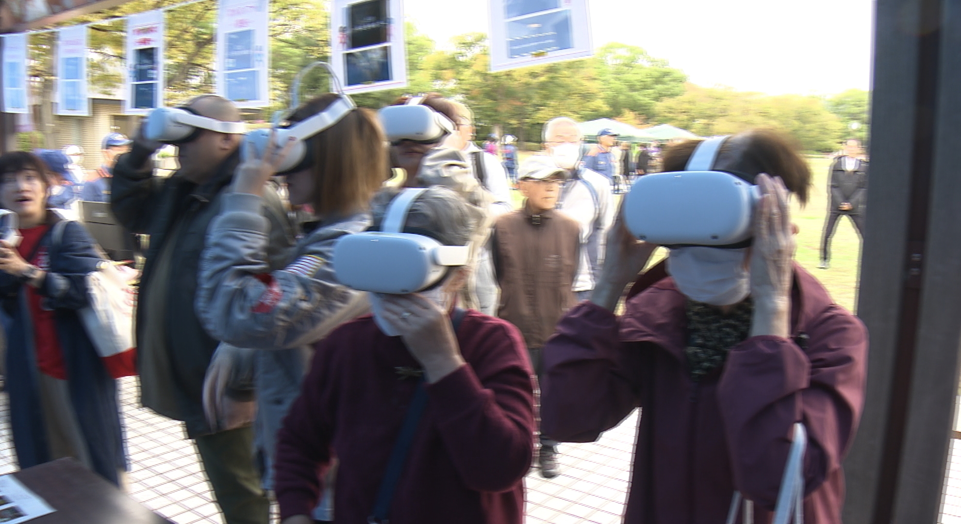 また、神戸市消防局が新たに導入したVRゴーグルを装着して火災からの避難を疑似体験できるコーナーも設けられ、住民たちが早期に逃げることの必要性を学んでいました。