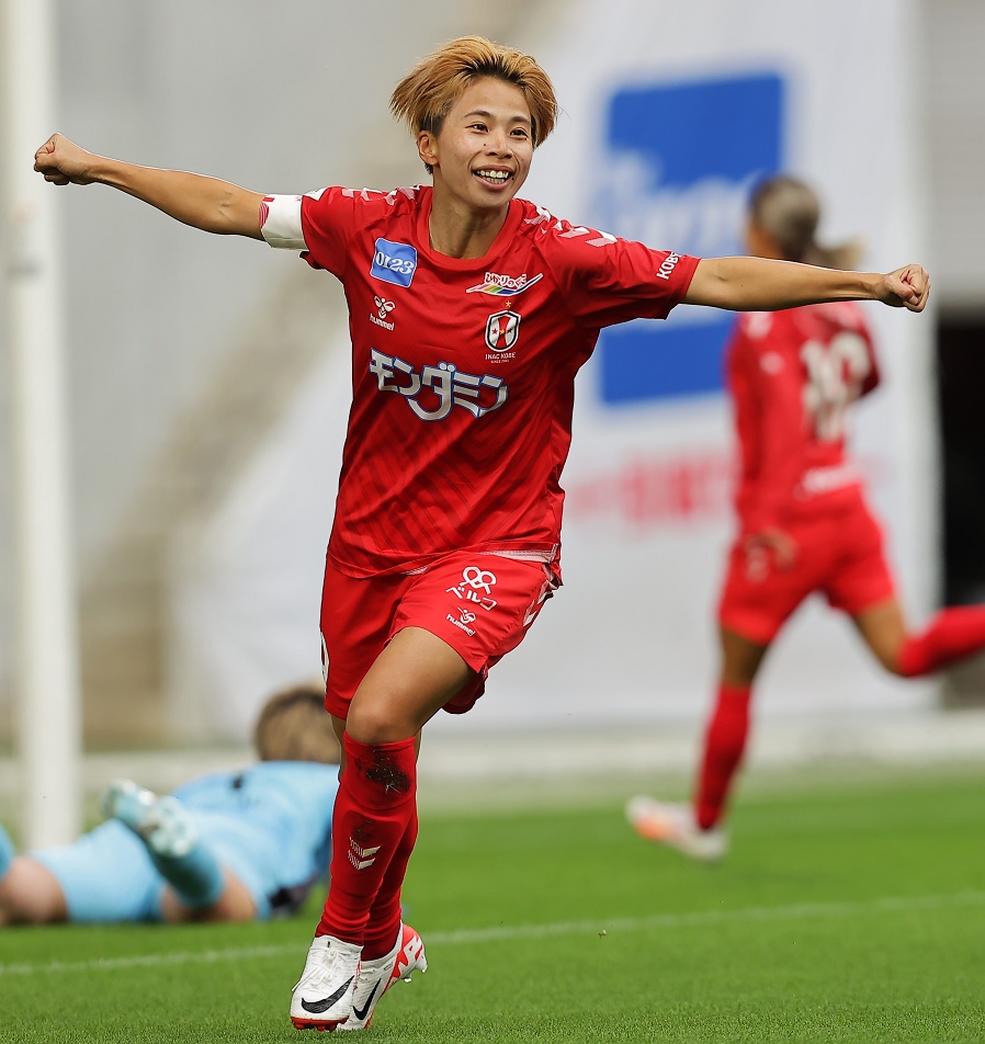 ドリブルで新潟陣内に持ち込み、FW田中美南(みな)にパスすると、田中は左足で相手ゴール右隅にシュートを決めた。