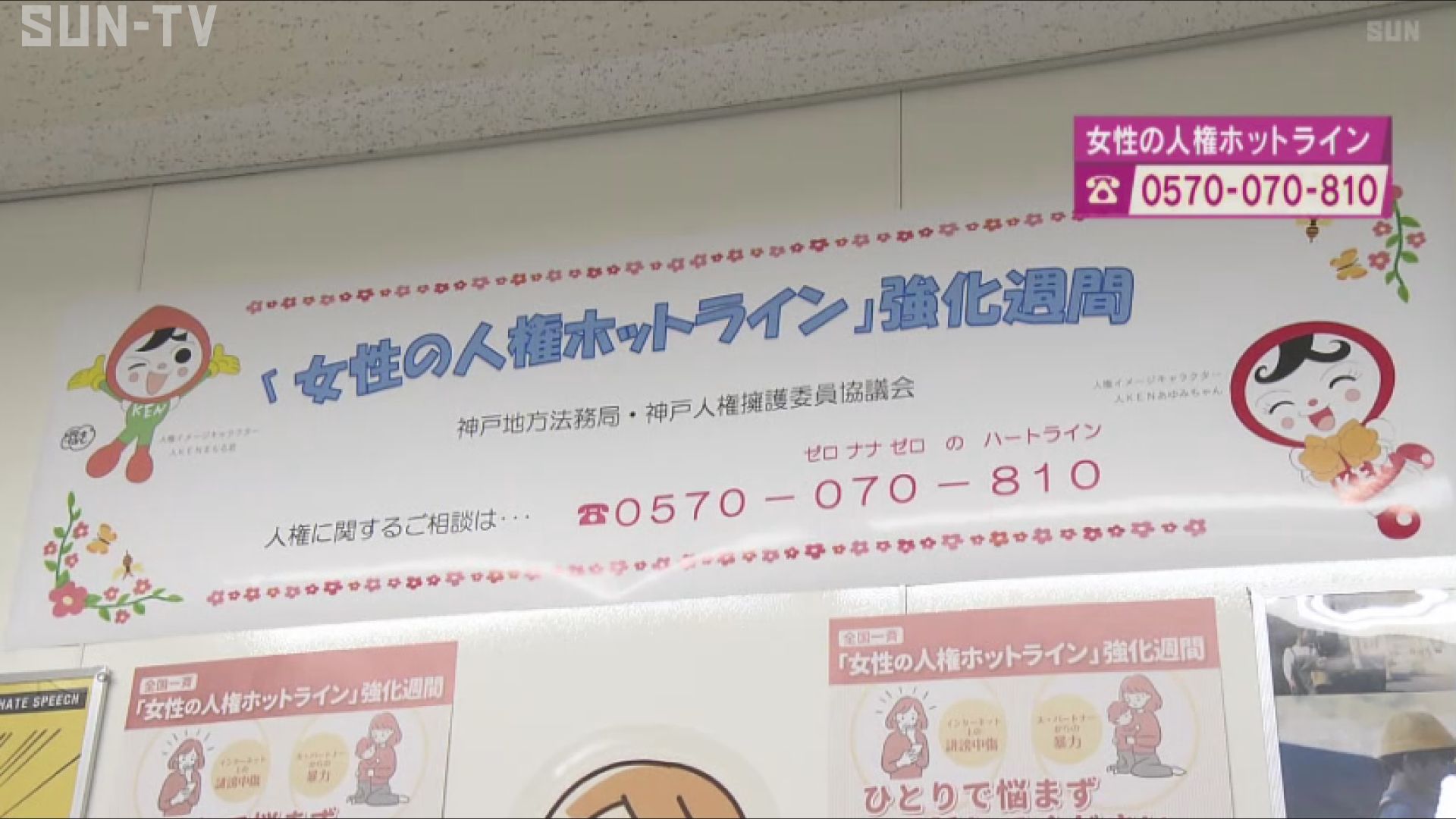 神戸地方法務局によりますと、去年は全国で1万2720件の相談が寄せられ、夫やパートナーからのDVや職場でのセクハラについての悩みが多くなっているということです。