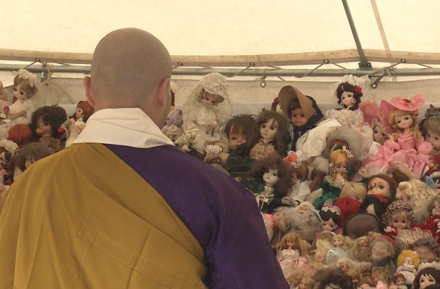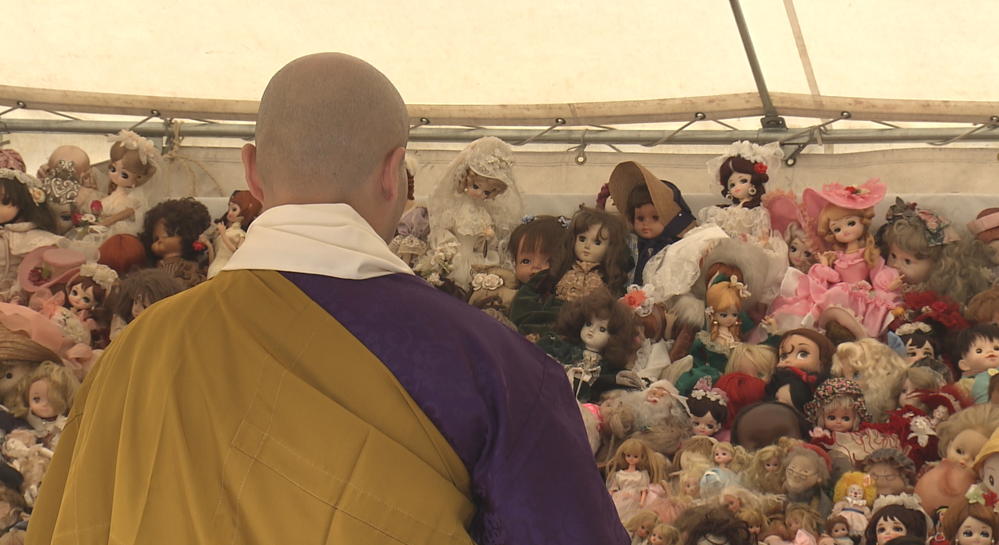 参列者たちは、供養が終わった後も、大切な人形との別れを名残惜しそうにしていました。