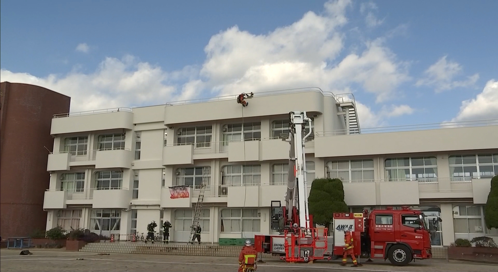 訓練のメイン会場は南あわじ市の賀集小学校で、午前9時に南海トラフ巨大地震が発生し、市内で最大震度7の揺れを観測、大津波警報が発表されたという想定で行われました。