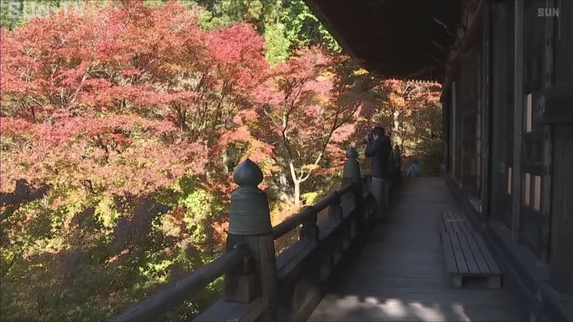 播州清水寺では、厳しい残暑の影響で、色づきのペースが通常より1週間程度遅くなっていて、11月いっぱいは紅葉を楽しめそうだということです。