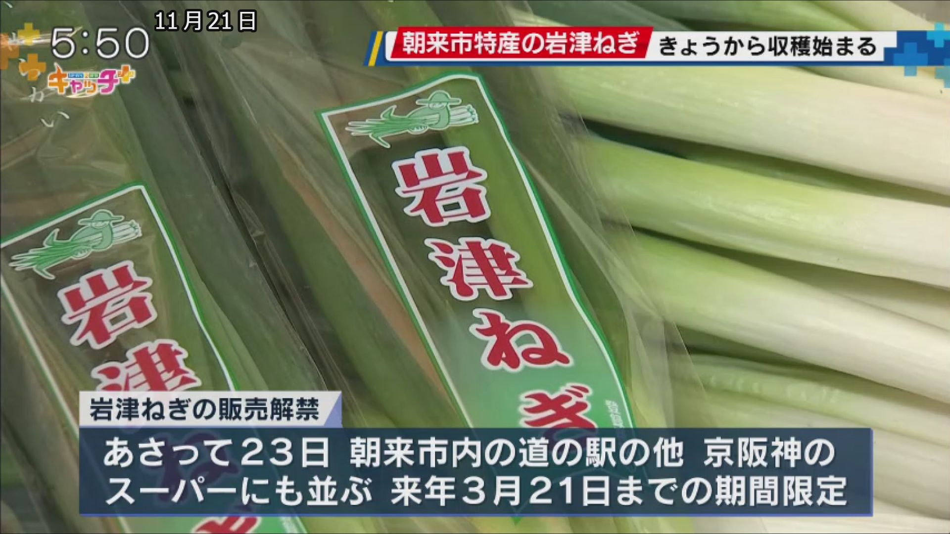 「岩津ねぎ」の販売解禁は23日で、朝来市内の道の駅のほか、京阪神のスーパーなどにも並びます。 販売は2024年3月21日までの期間限定となっています。
