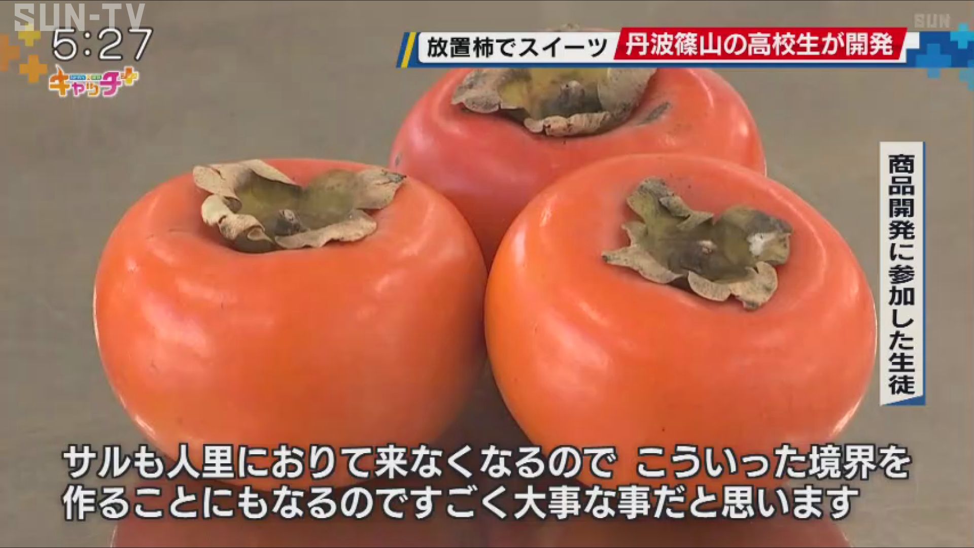 丹波篠山市の高校生たちが、サルによる柿の食害を防ぐために、一早く収穫してジャムなどに商品化する活動に取り組んでいます。