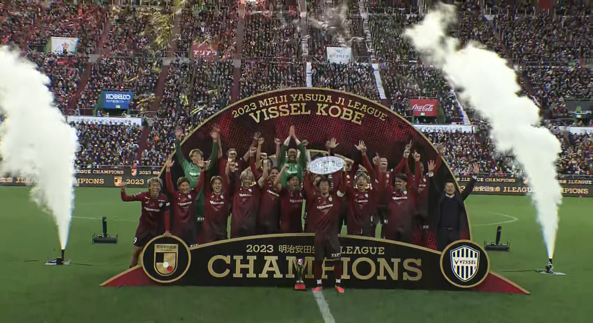 ヴィッセル神戸が初のリーグ優勝 創設29年目で快挙 2023.11.2518:43 地域・まち 文化・スポーツ サッカーJ1・ヴィッセル神戸はきょう、ノエビアスタジアム神戸で行われた試合で、名古屋グランパスに2対1で勝利。 1995年のクラブ創設から29年目で、悲願のリーグ優勝を果たしました。 関西勢のJ1リーグ優勝は、2014年のガンバ大阪以来2チーム目で、ヴィッセル神戸は2019年の天皇杯優勝に続き2つ目のタイトル獲得となりました。 #ヴィッセル神戸 #優勝 記事のギャラリーを見る ニュース一覧へ戻る