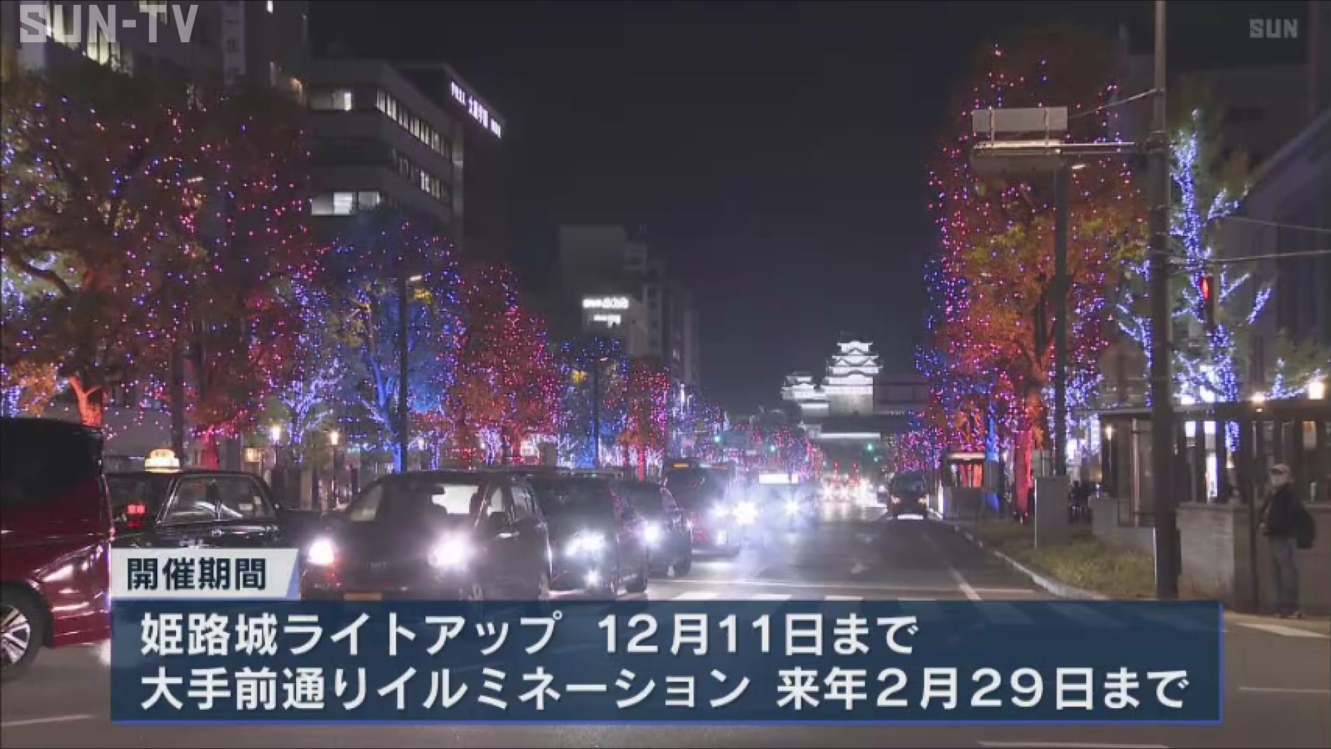 姫路城のライトアップは、12月11日まで、大手前通りのイルミネーションイベントは2024年2月29日までの開催となっています。
