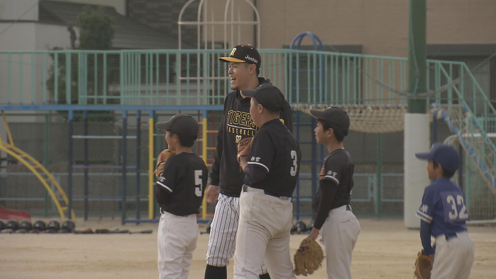 プロ野球・阪神タイガースの佐藤輝明選手が、出身の西宮市で子どもたちに野球教室を開きました。