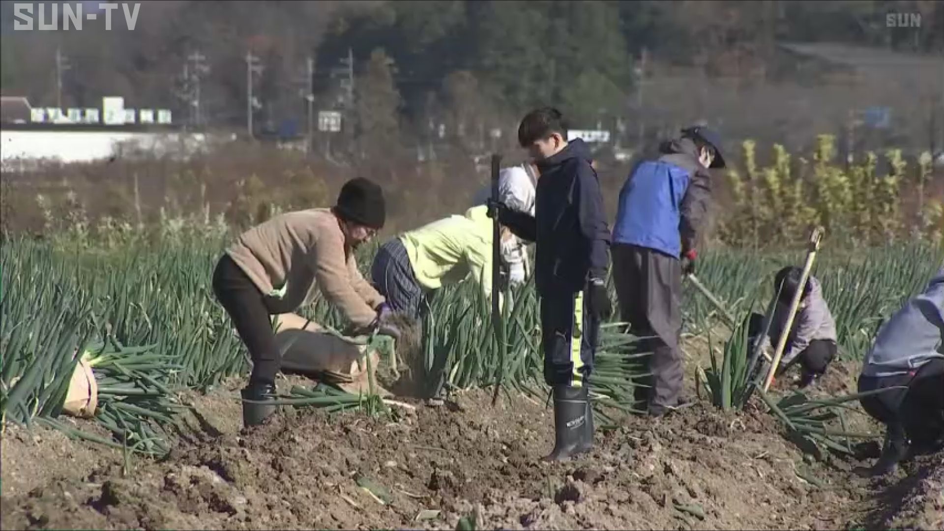 兵庫県朝来市で、冬の味覚として知られる特産の「岩津ねぎ」の収穫体験が始まりました。