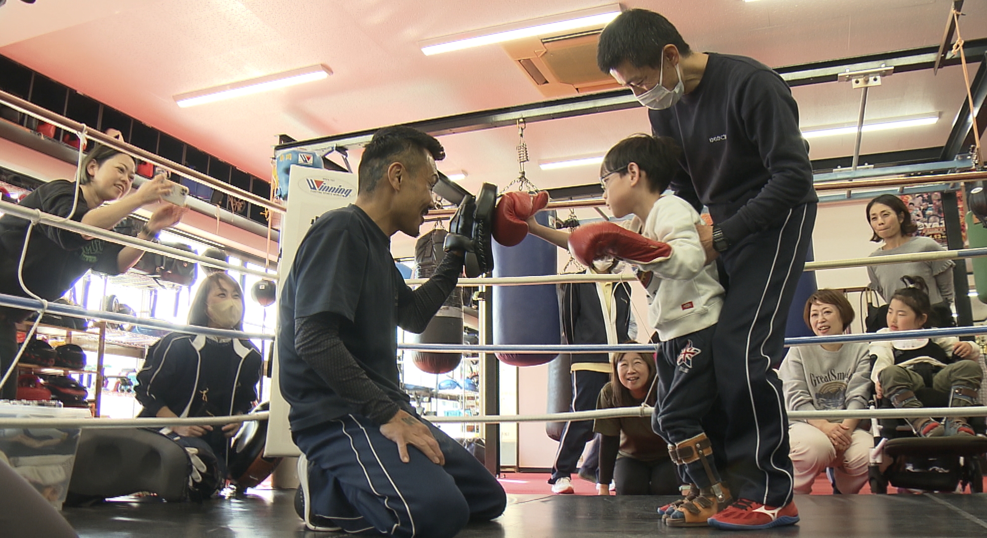 明石市にある、元プロボクサー・戎岡彰さんのボクシングジムで開かれた「親子ボクシング体験会」には、障害のある子どもたちと親、3組が参加しました。