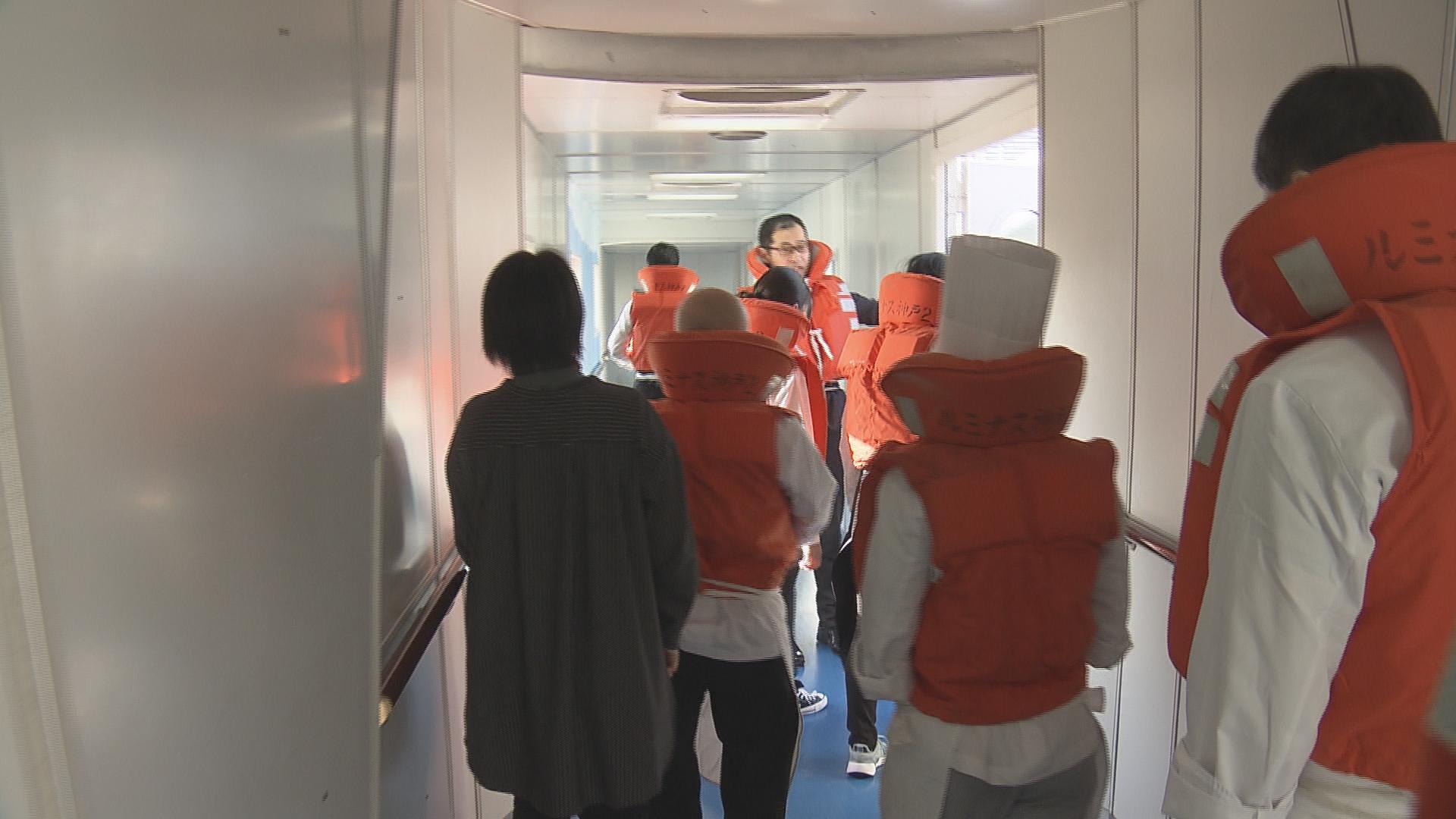 今回の訓練には車いす利用者と障害者役の職員も乗客として参加していて、スタッフは乗客がパニックにならないように、一人一人に声を掛けながら避難させていました。