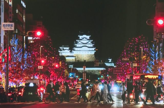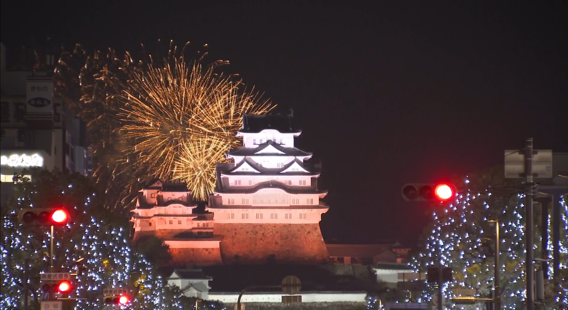 国宝・姫路城では、世界遺産登録30周年を記念した100発の花火が打ち上げられ観光客を魅了しました。