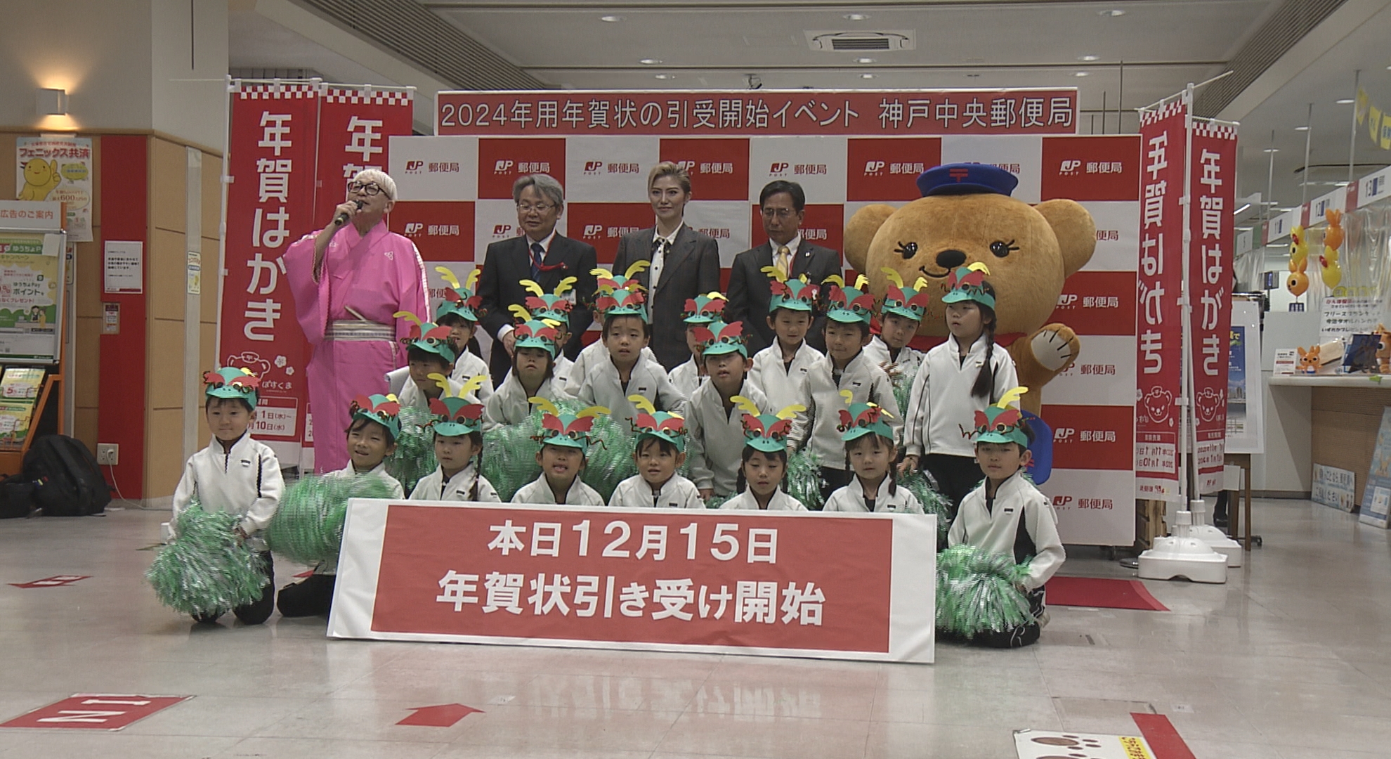 2024年用の年賀状の受け付けが12月15日から始まり、兵庫県神戸市内の郵便局では、園児たちがさっそく投函しました。