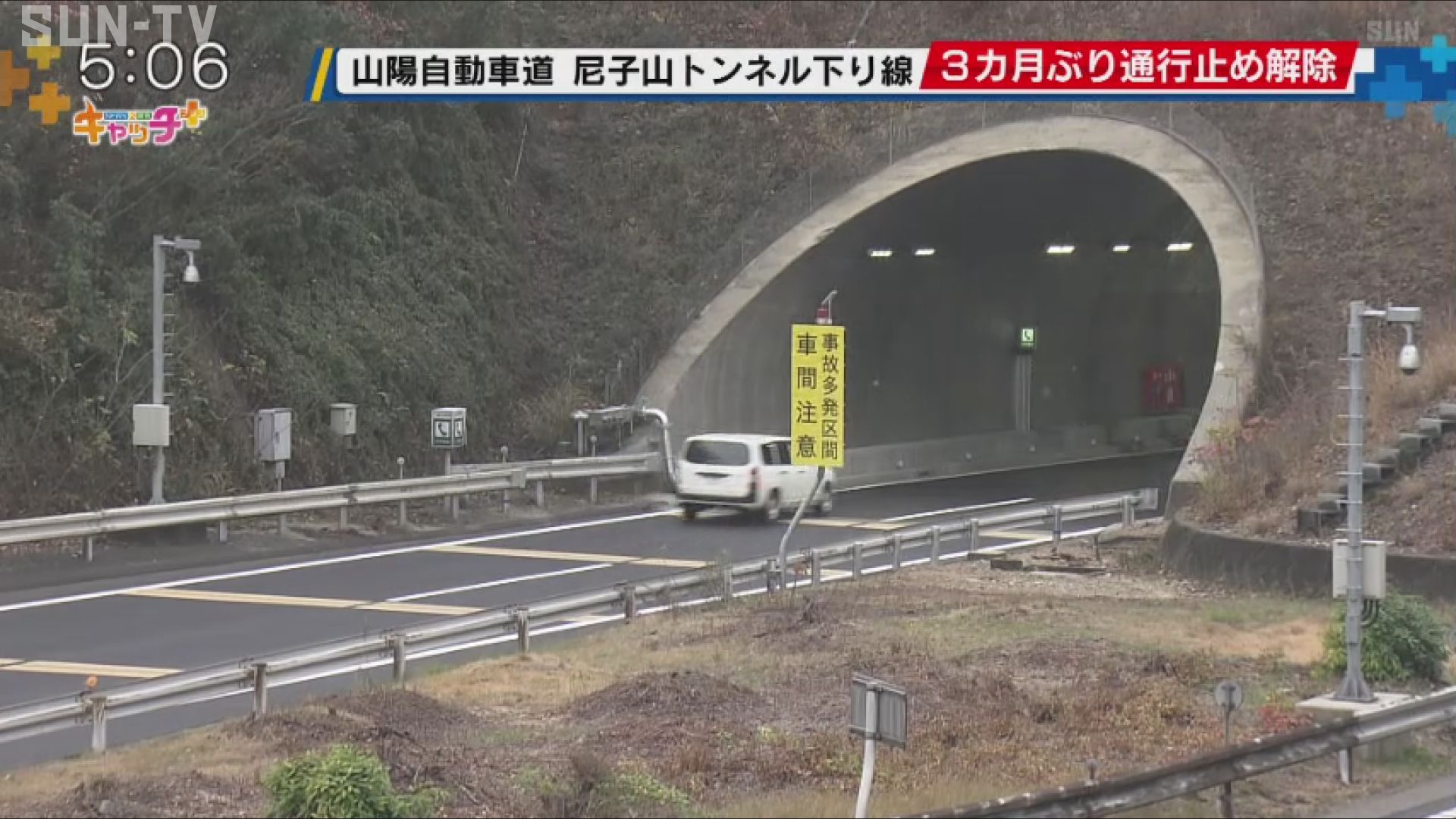道路の舗装や設備の補修などを進めてきたNEXCO西日本は、復旧作業が完了し、トンネル内の安全が確認できたとして、15日午前11時、およそ3カ月ぶりに通行止めを解除しました。