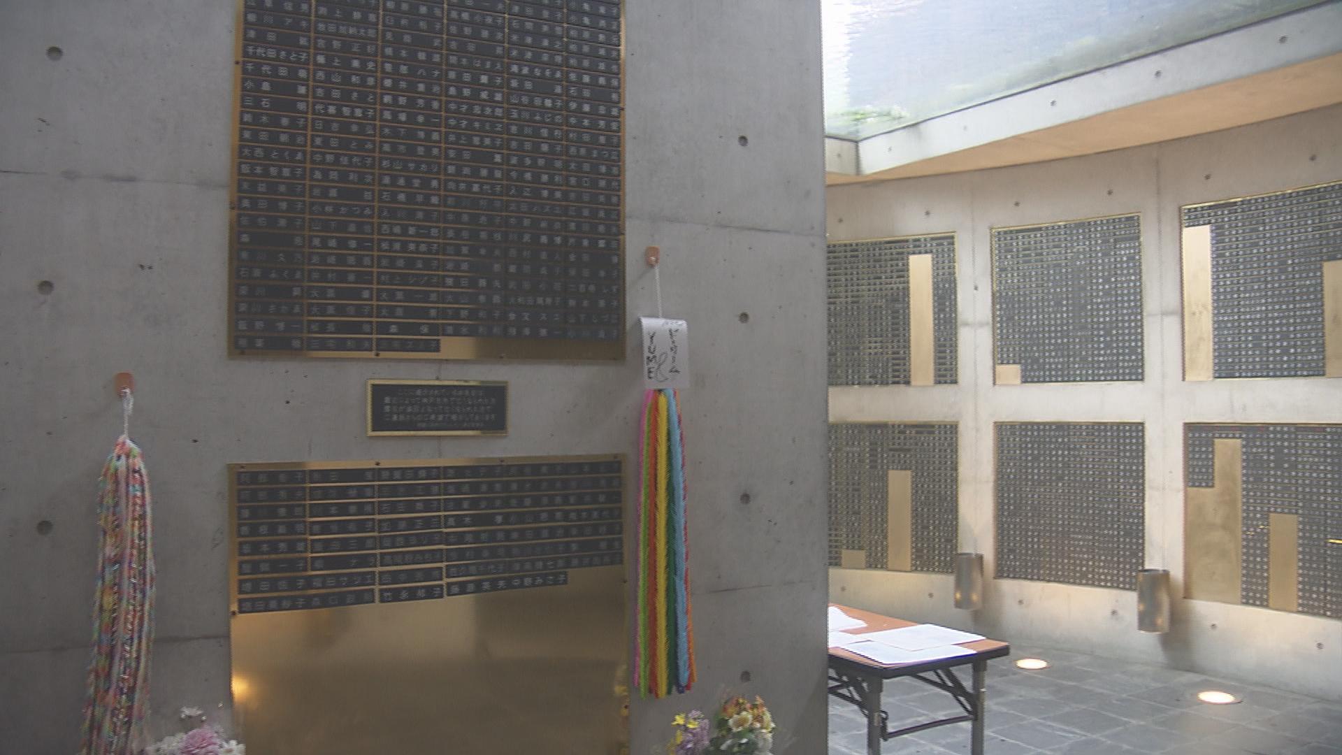 遺族らは、モニュメントの地下にある瞑想空間に銘板を貼り付けて、亡き人に思いを馳せていました。