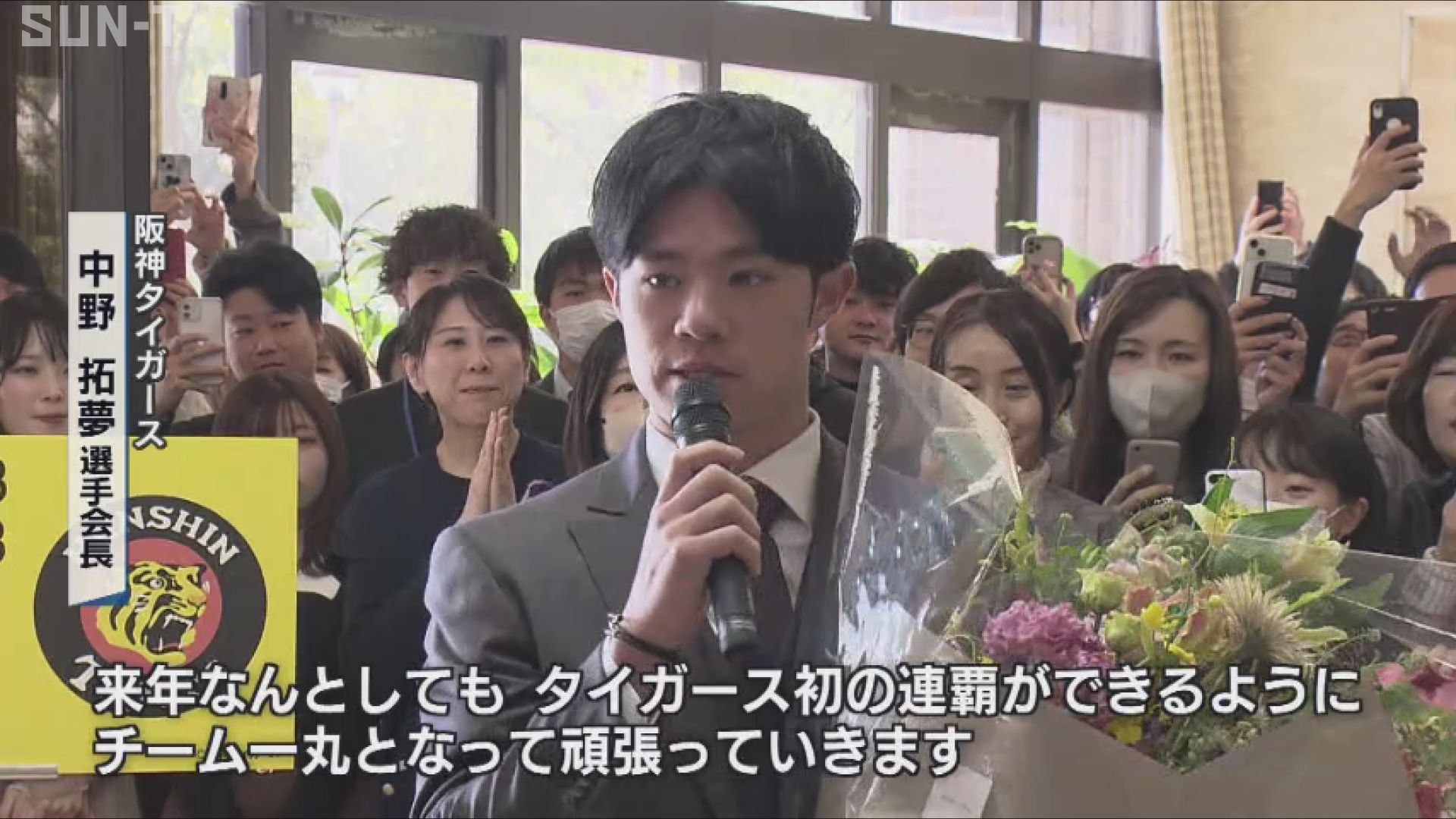 斎藤知事から「日本一で県民が元気と勇気をいただいた」と感謝を伝えられると、中野選手は45万人が熱狂した神戸・三宮での優勝記念パレードのお礼を述べ、新選手会長として連覇に挑む来シーズンに向け気持ちを新たにしていました。