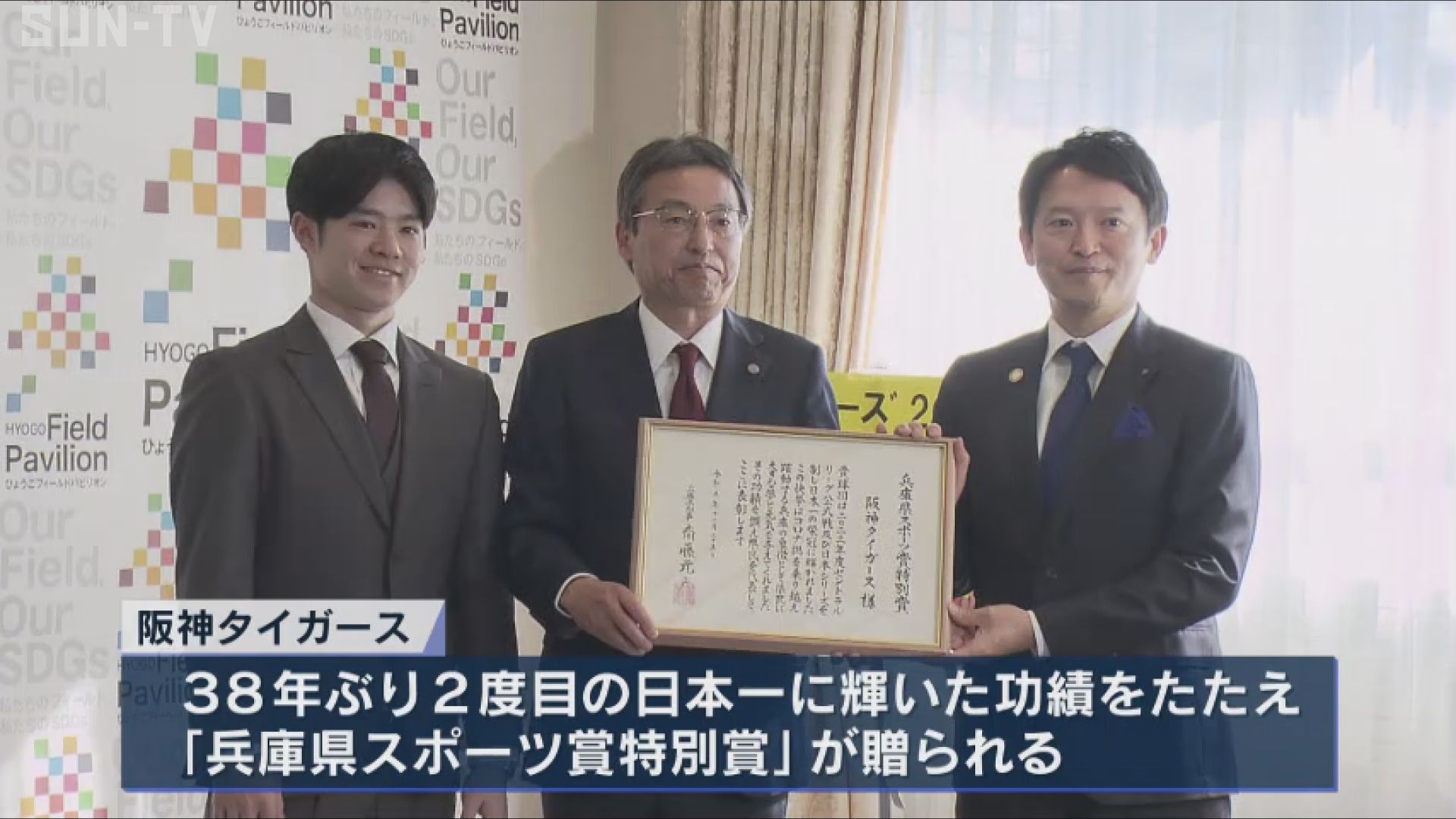 38年ぶり2度目の日本一に輝いた阪神タイガースの功績をたたえ、兵庫県から「スポーツ賞特別賞」が贈られました。