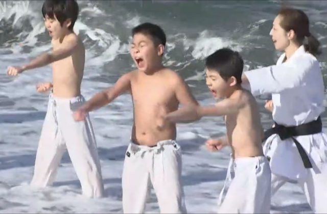 香美町で新春恒例の寒中稽古 心身を鍛える 2024.01.0317:13 地域・まち 兵庫県香美町では1月3日、地元の空手教室の生徒らが寒中稽古に臨みました。 香美町香住区のしおかぜ香苑では、地元の空手教室の生徒など男女12人が胴着1枚の姿で海に入りました。 この教室では新春恒例の行事として寒中稽古を毎年行っていて、生徒らは2024年の目標を心に誓い、「百本突き」をしました。 生徒らは厳しい寒さの中での稽古を通じ、心身を鍛えていました。 #寒中稽古 記事のギャラリーを見る ニュース一覧へ戻る