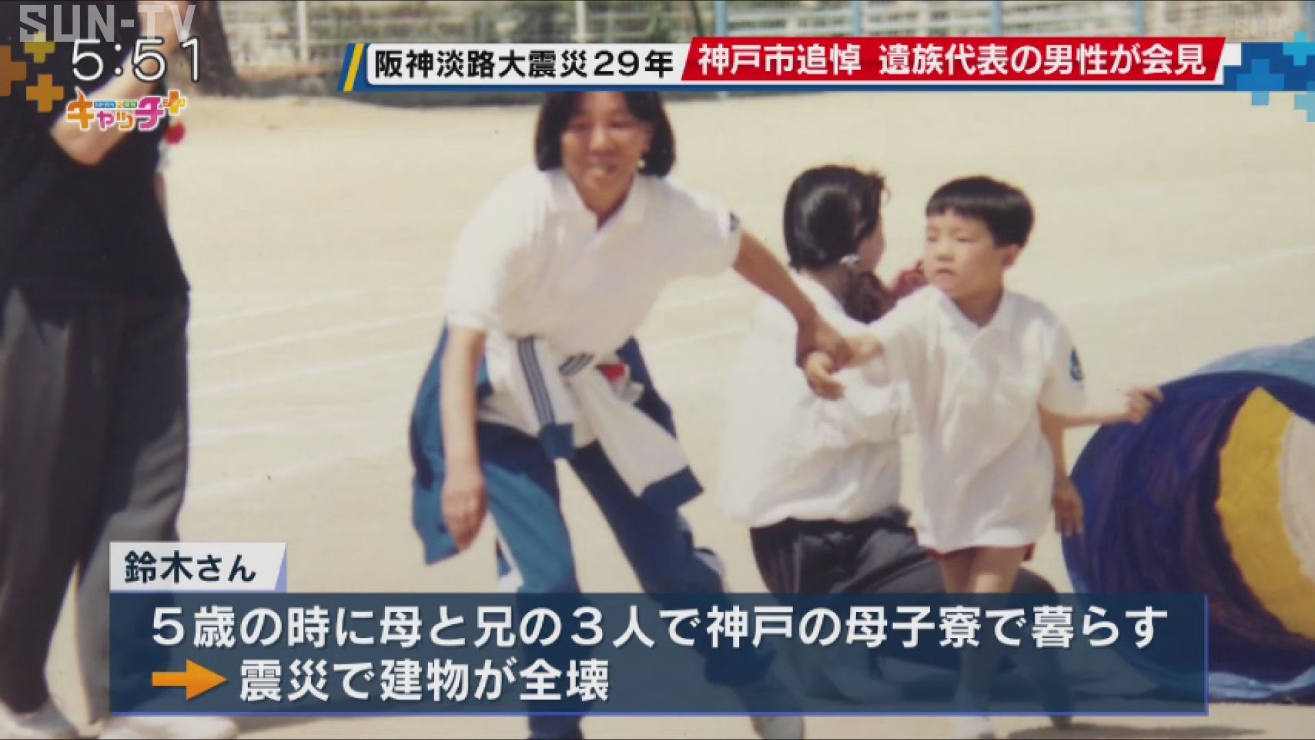 鈴木さんは、5歳の時に母と兄の3人で神戸の母子寮に住んでいましたが、震災で建物が全壊。