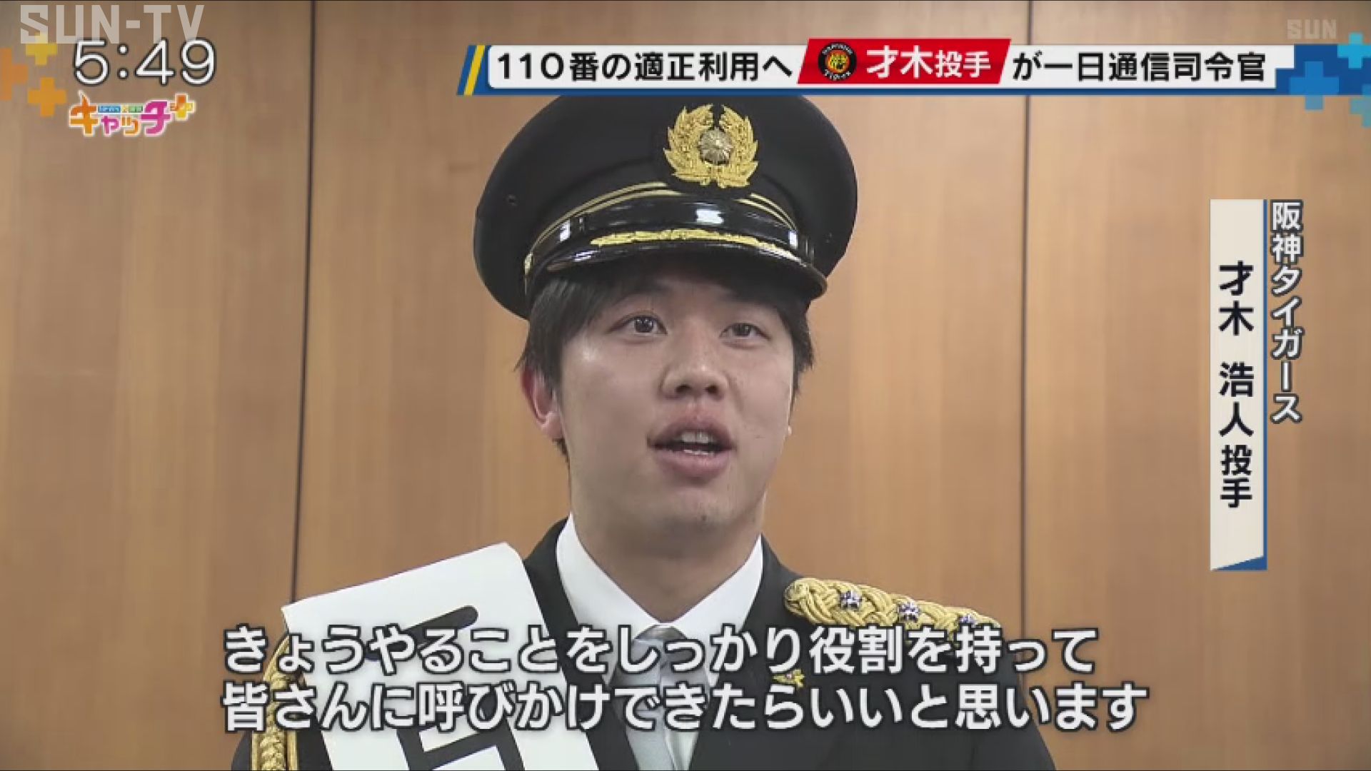 1月10日の「110番の日」に合わせて、阪神タイガースの才木浩人投手が兵庫県警の一日通信指令官を務め、110番の適切な利用を呼びかけました。