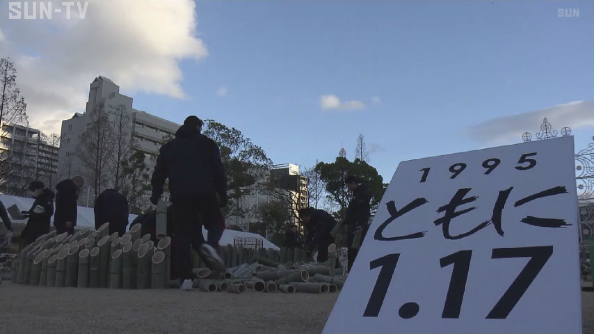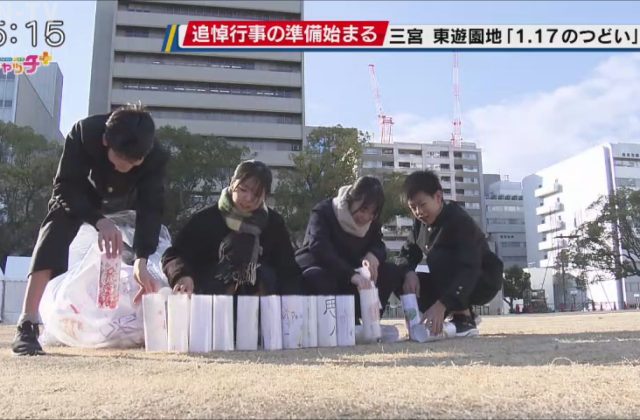 兵庫県神戸市三宮の東遊園地では、追悼行事「1.17のつどい」の準備が始まりました。