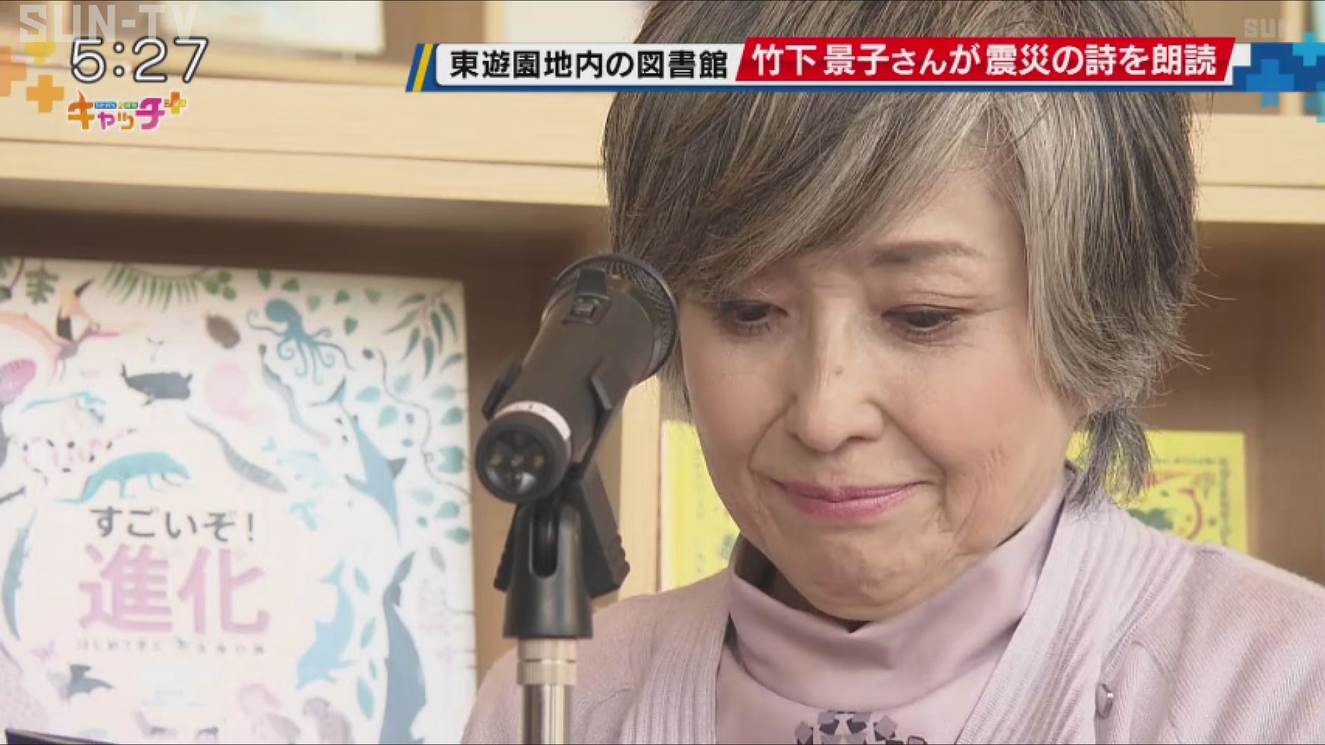 その東遊園地内にある図書館で、俳優の竹下景子さんが震災について書かれた詩を朗読しました。