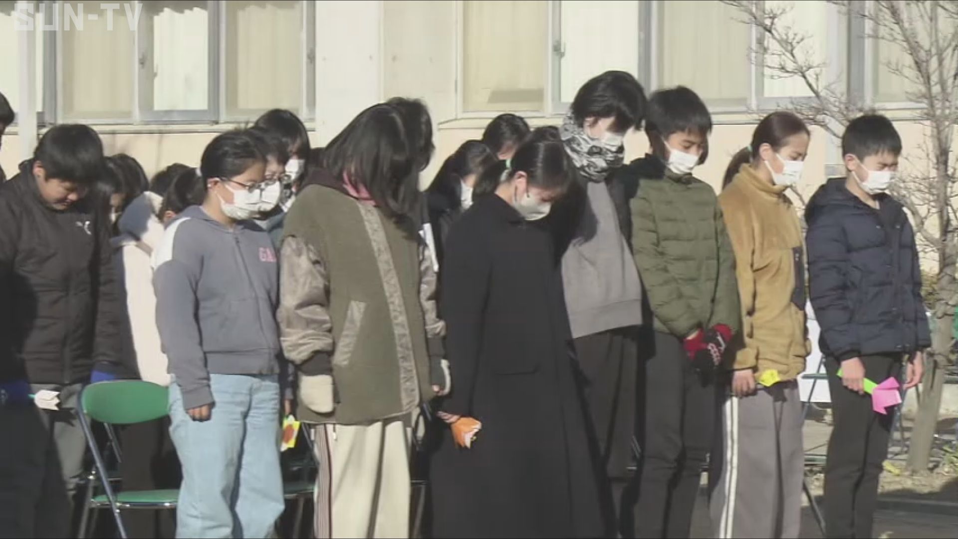 17日の式には、在校生をはじめ地域の住民や震災で亡くなった当時小学1年生だった米津漢之くんの遺族らが参列し、全員で犠牲者に黙とうを捧げました。