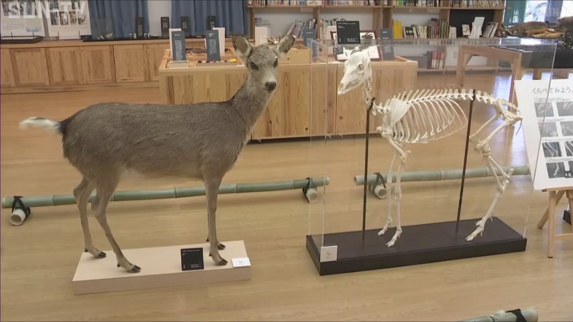 丹波市の氷上回廊水分れフィールドミュージアムで開かれている企画展は、動物の骨格や小動物のはく製、昆虫などの「自然史標本」およそ170点が展示されています。