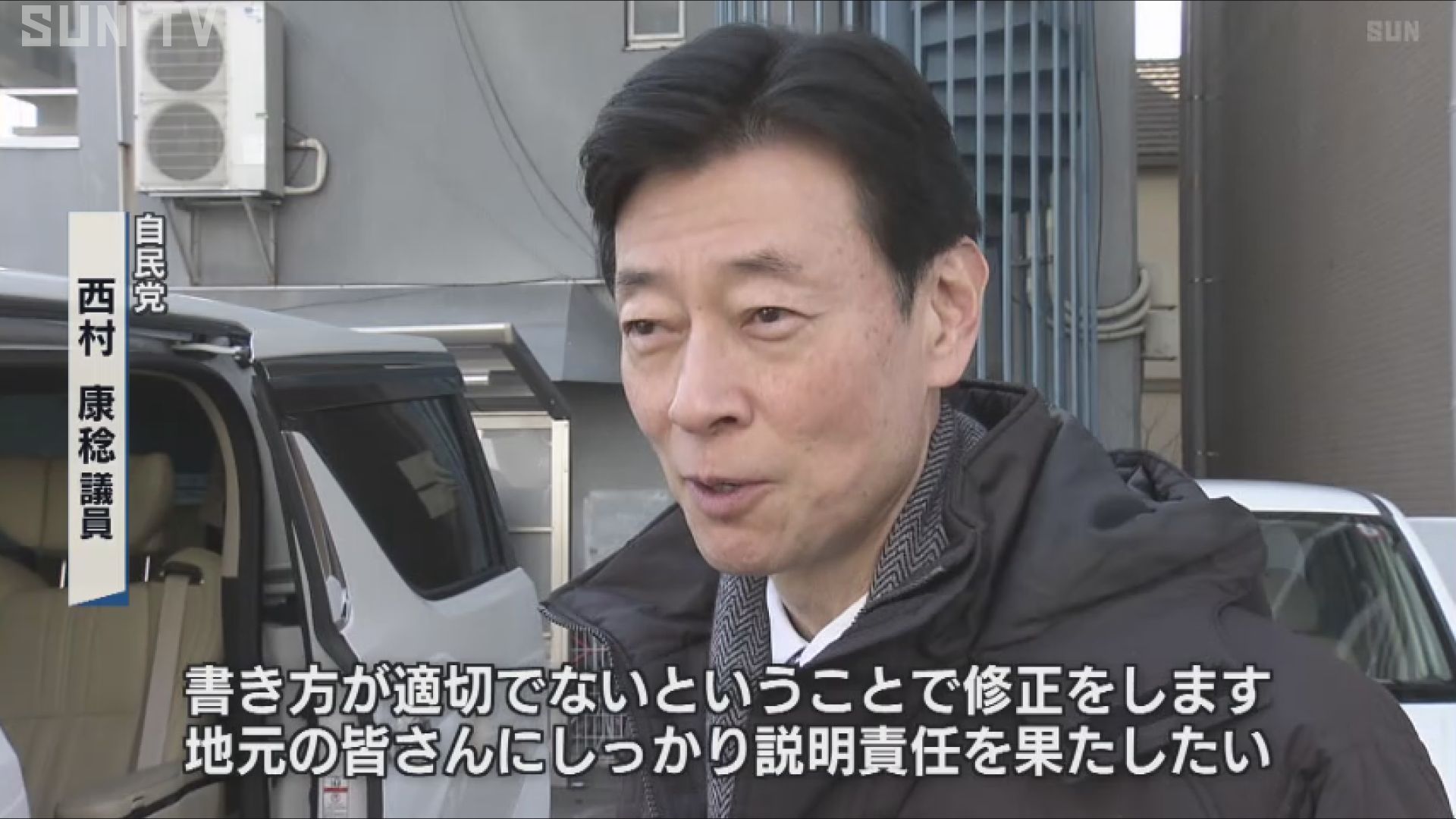 「私は裏金は一切ありません。一定のことを正式に記載もしていますし、政治資金にも入れていますので、書き方が適切でないというところで修正をします。これから地元の皆さんにきちんと説明していきたい」