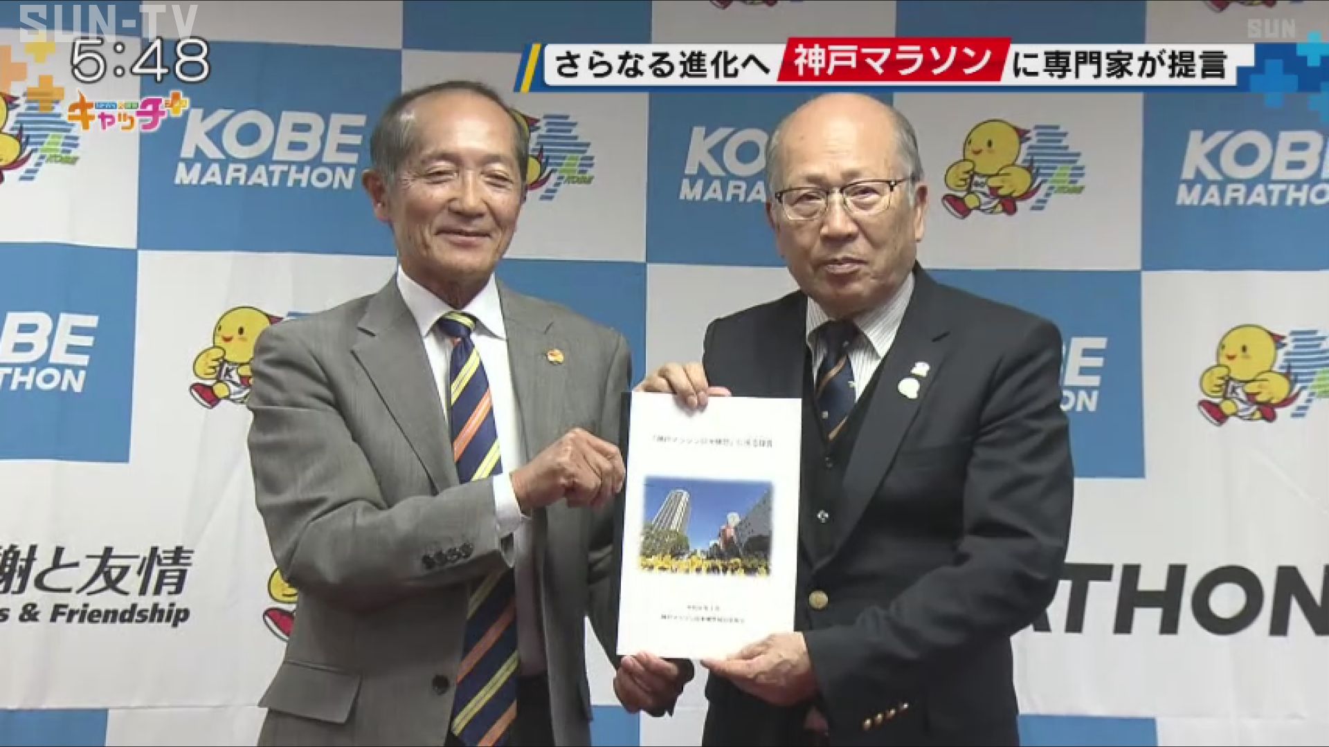 神戸マラソンをさらに進化させようと、2023年3月から有識者らでつくる委員会が検討を進めていて、23日、実行委員会に対し提言書を手渡しました。 提言書では、神戸市が2023年12月に方針を示した明石市までコースを延ばし、ゴールをウオーターフロントエリアに変更することや、新たな車いす種目の開催や、海外ランナーの誘致促進など5項目が挙げられました。