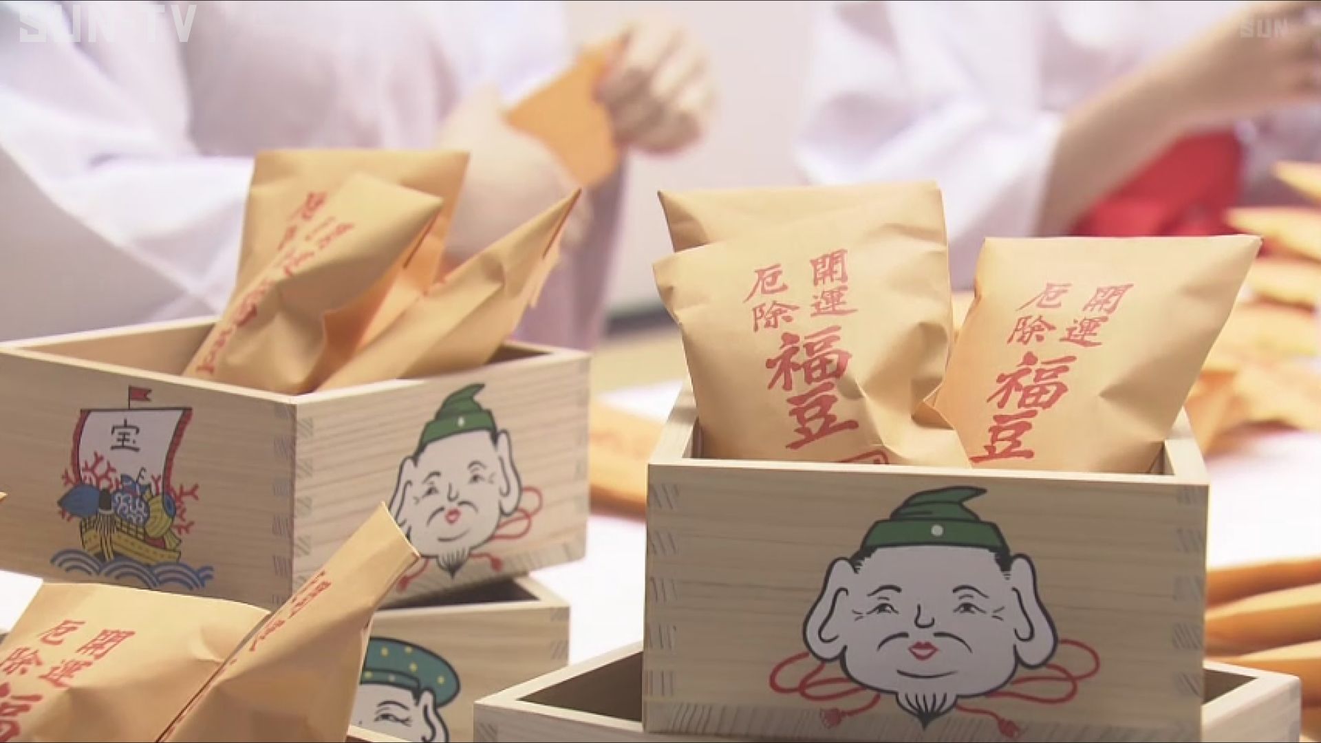 2月3日の節分を前に、神戸市の生田神社では、巫女たちが福豆の袋詰め作業を進めています。