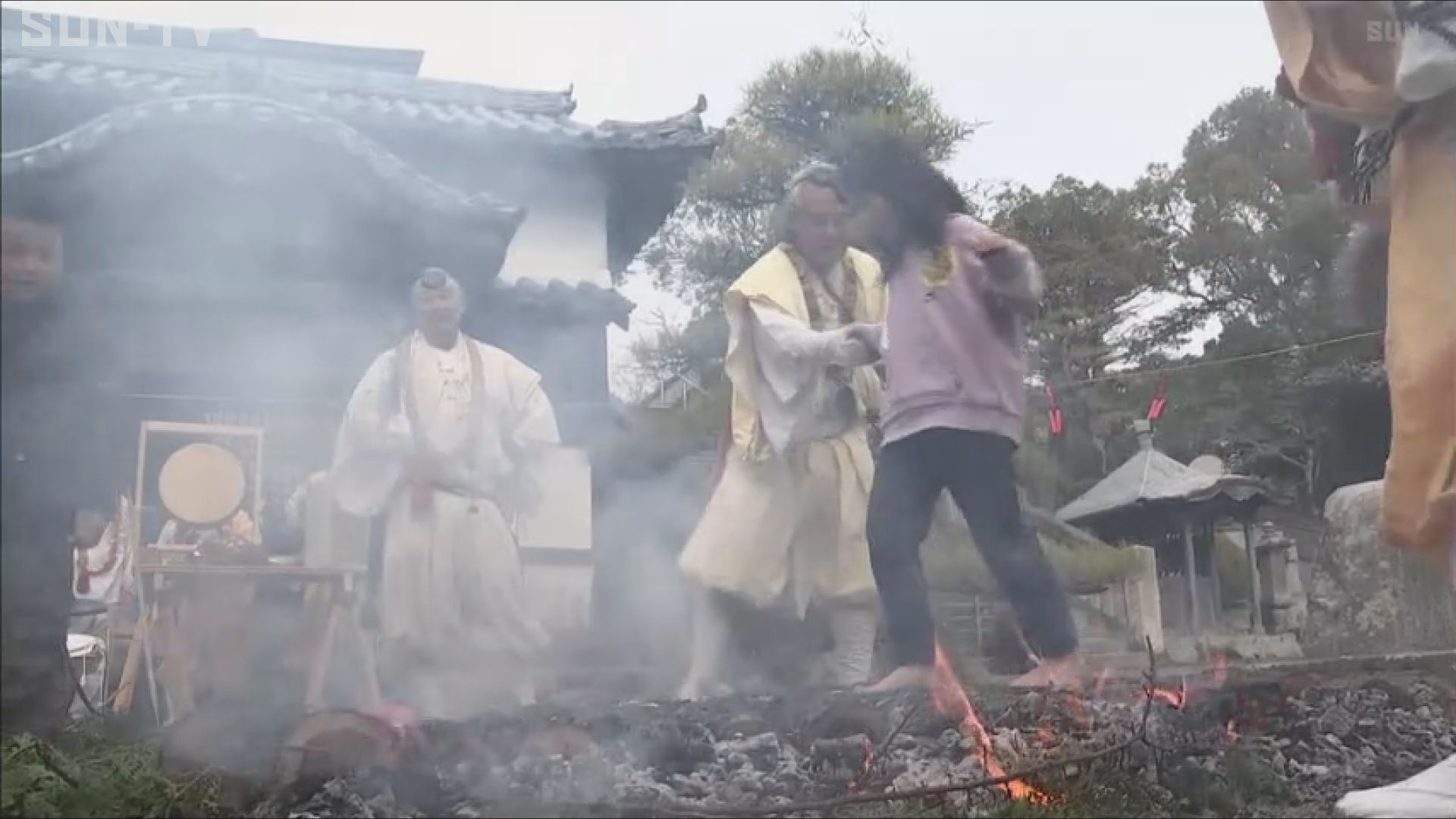 淡路島の寺で恒例行事「火渡り」 護摩を燃やした後の丸太の上をはだしで歩く 無病息災願い 2024.01.2821:20 地域・まち 兵庫県洲本市の安覚寺では護摩を燃やした後の丸太の上をはだしで歩き、一年の無病息災を願う伝統行事「火渡り」が行われました。 洲本市の安覚寺は千年以上にわたって人々の信仰を集める薬師如来がご本尊で、病気や苦痛などの厄災を除くとされています。 28日の初薬師大祭では伝統行事の「火渡り」が行われ、住職らがお経を唱える中、護摩を燃やした後の丸太の上を住民たちがはだしで歩き、一年の無病息災を願っていました。 参加した人たちは丸太の上を素早く渡り、新たな一年の無事を祈りながら厄を払っていました。 #火渡り 記事のギャラリーを見る ニュース一覧へ戻る