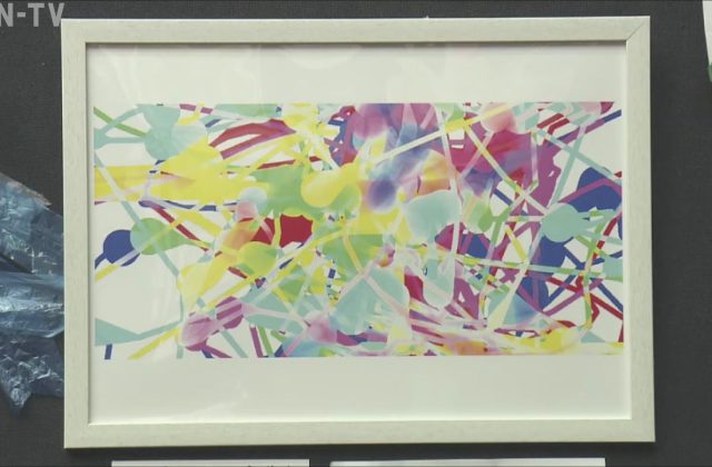 躍動感あふれるこちらの絵画は、脳に障害のある15歳の男の子が、目の動きによって描画や色の選択を行う、視線入力装置を使って仕上げた作品です。