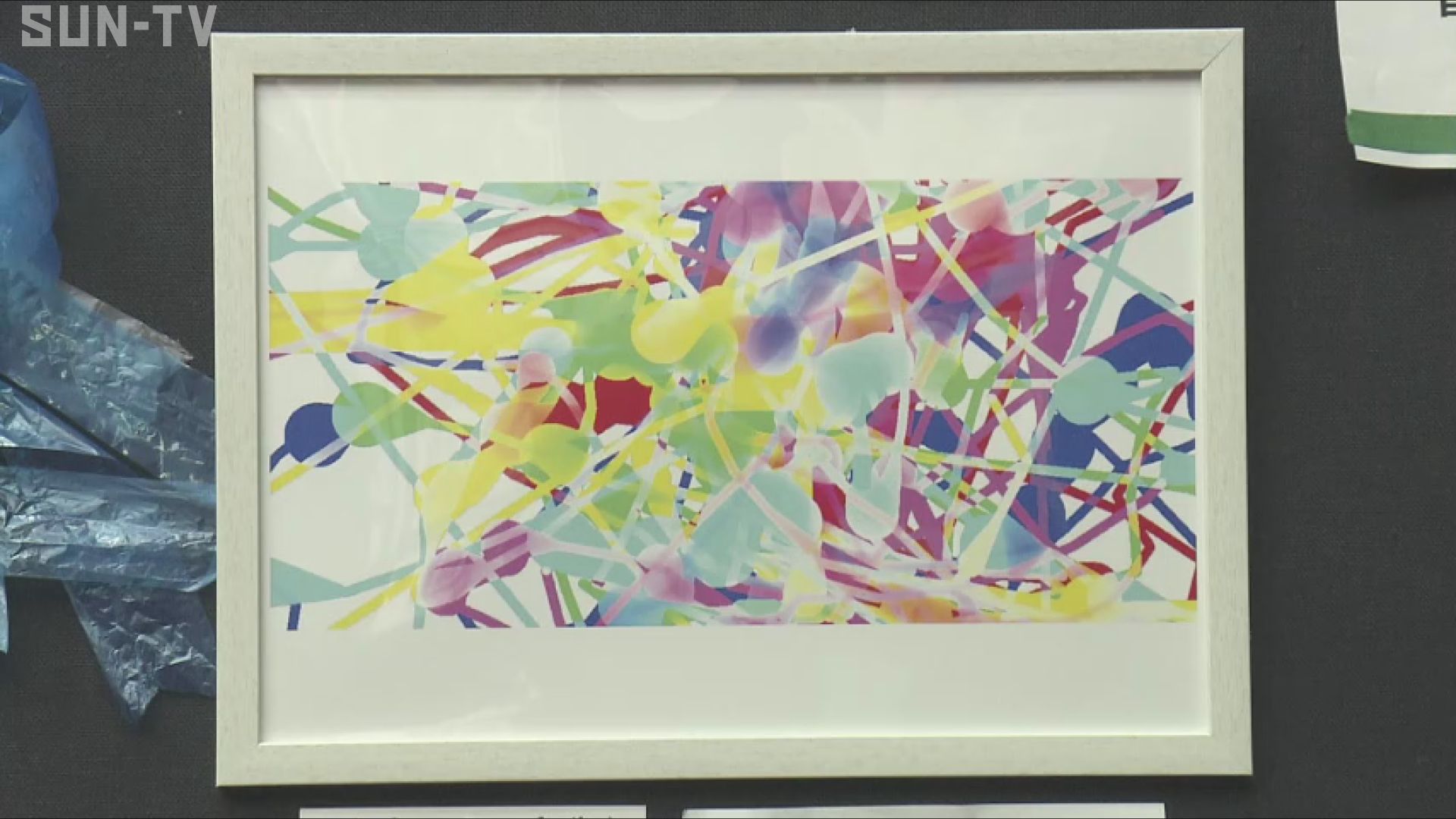 この美術展は、障害のある人たちの表現の場をつくろうと、兵庫県肢体不自由児者協会が毎年開いているもので、会場には、6歳から84歳まで幅広い年代の人たちが制作した、絵画や書、写真など70点が展示されています。