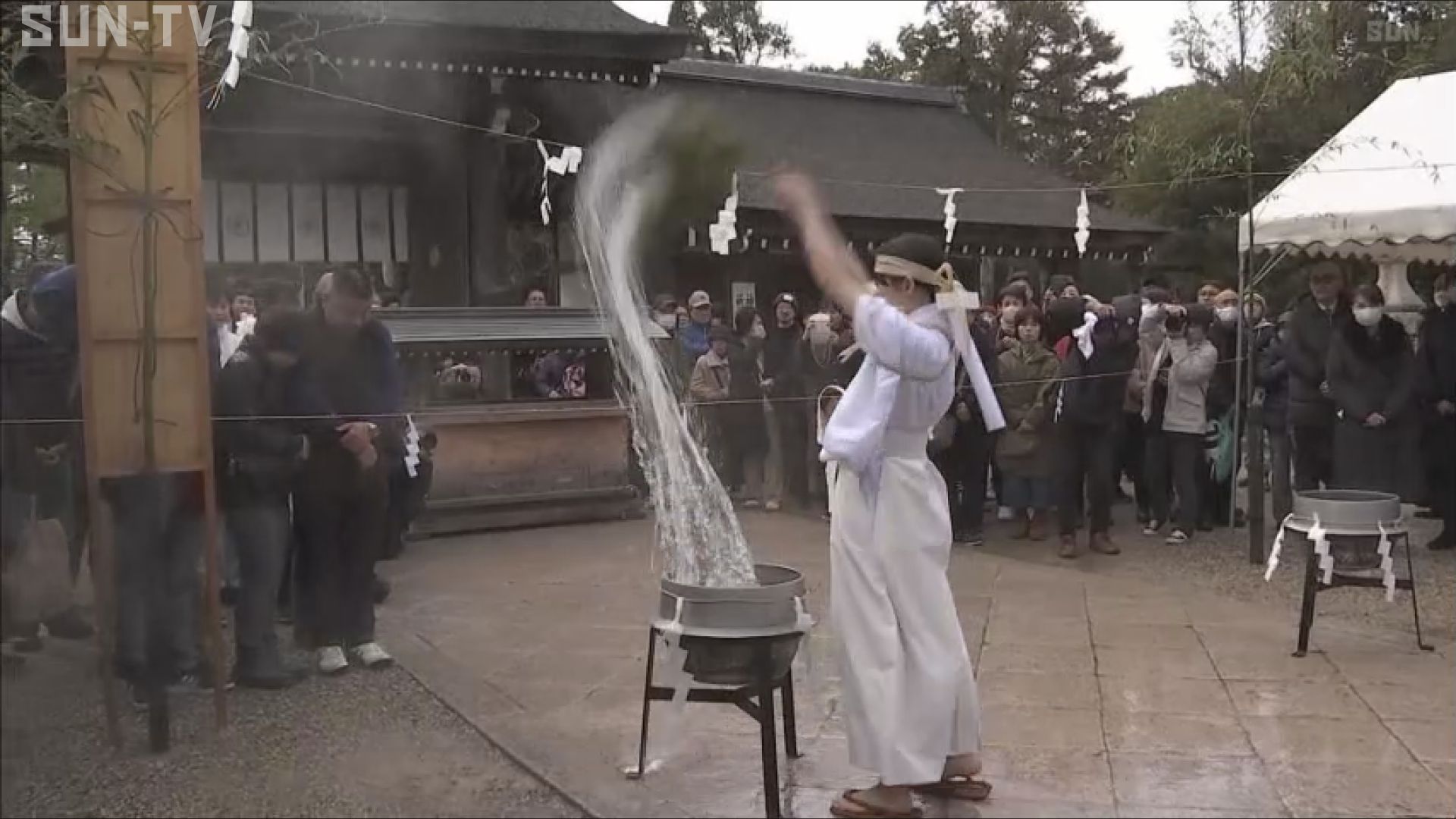 立春の2月4日、淡路市の伊弉諾神宮では、熱い湯を浴びて無病息災を祈る恒例の湯立神楽祭が開かれました。