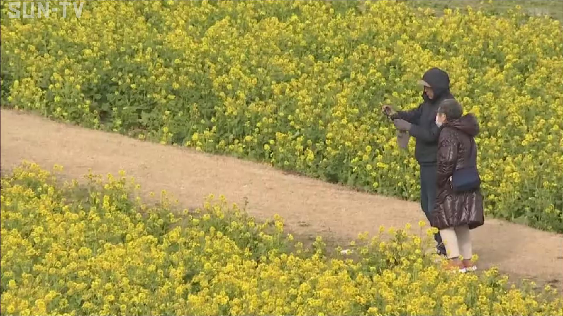 兵庫県淡路市にある花の名所「あわじ花さじき」では、早咲きの菜の花が見頃を迎えています。