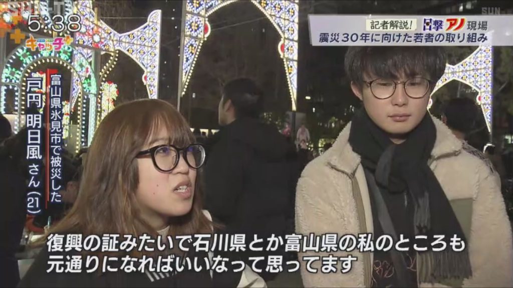 (神戸は)復興してきれいな建物とかイルミネーションもあると思うので、復興の証みたいで、石川県とか富山県の私のところも元通りになればいいなって思ってます」