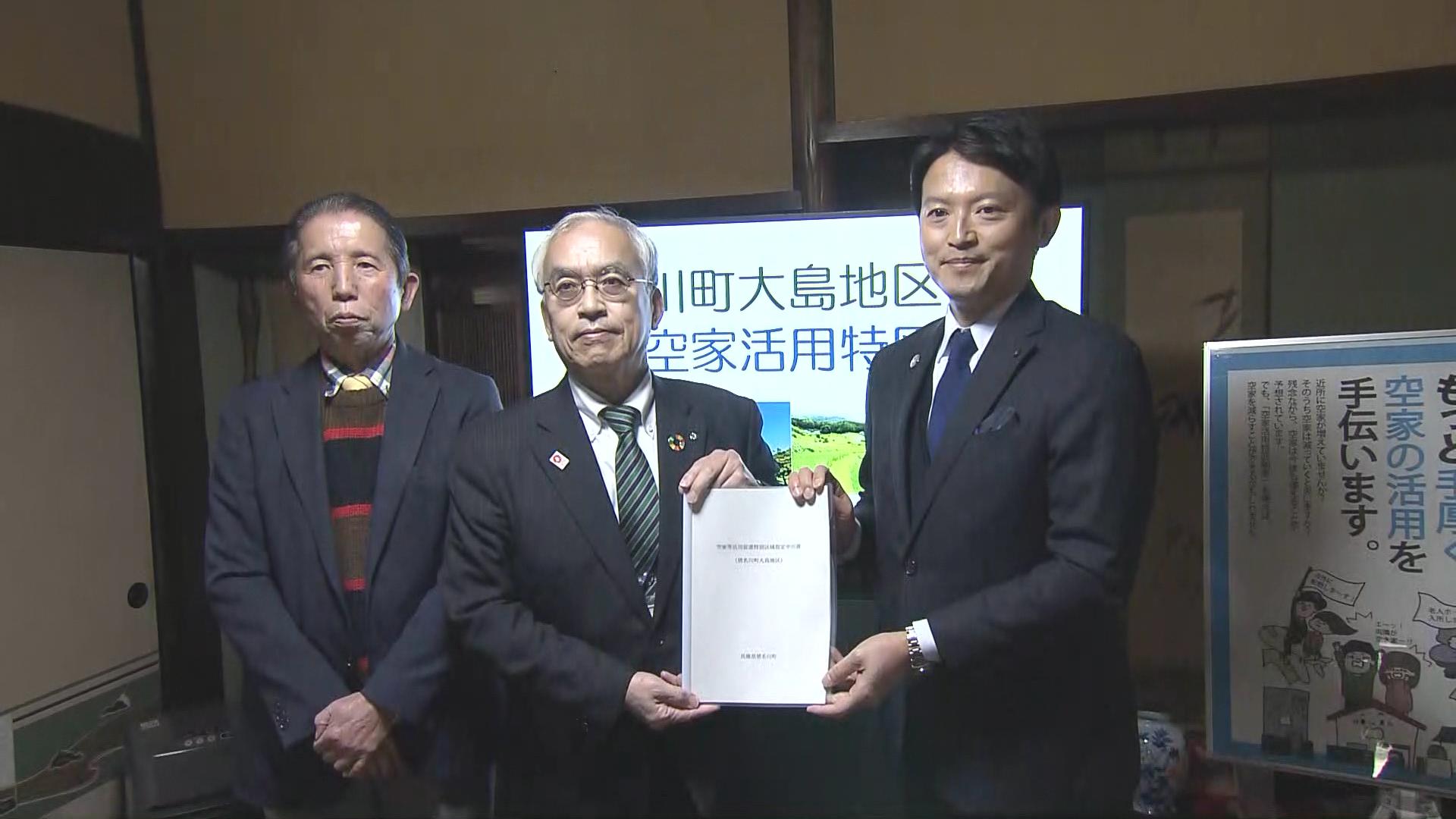 斎藤知事は2月6日、民泊として活用予定の古民家など、大島地区の空き家を視察。