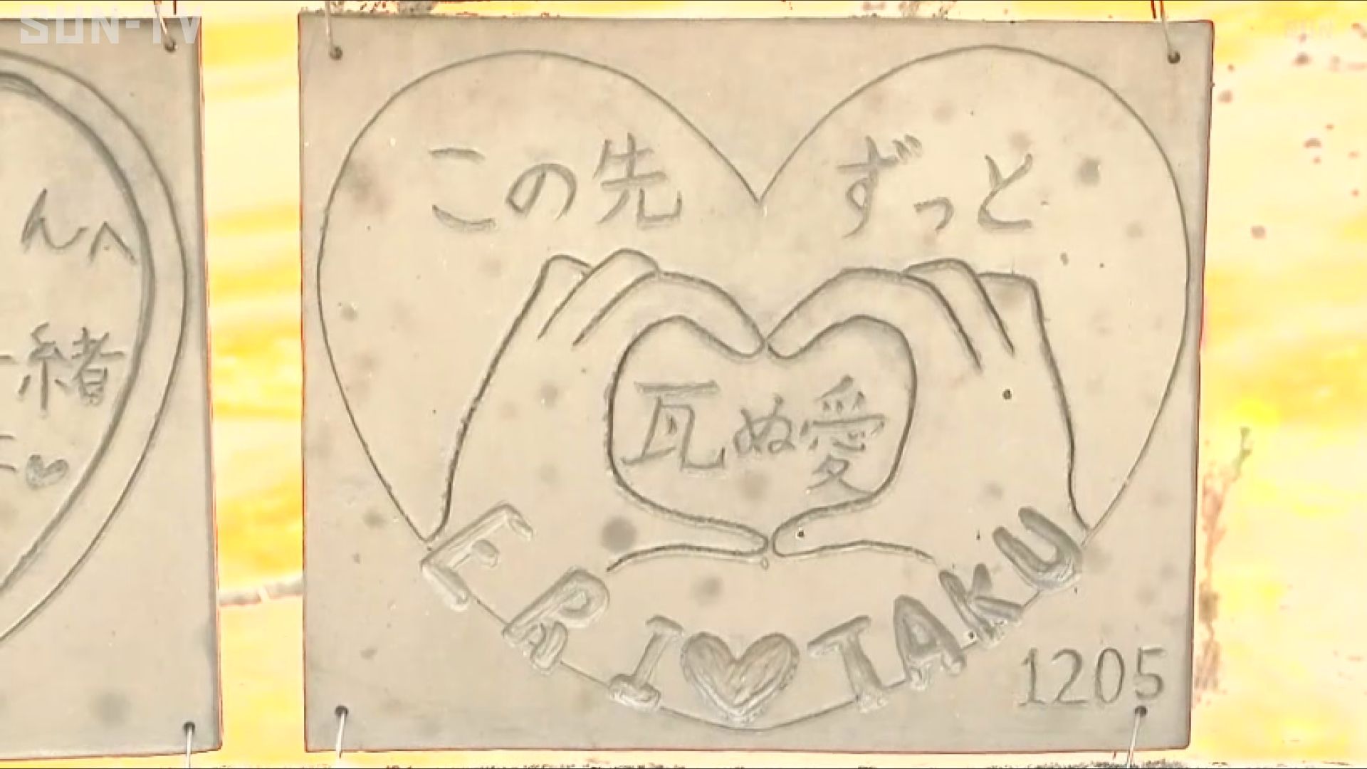 兵庫県南あわじ市で特産の「いぶし瓦」に愛の言葉を刻んだ「プロポーズ瓦」のコンテストが2月13日に開かれました。