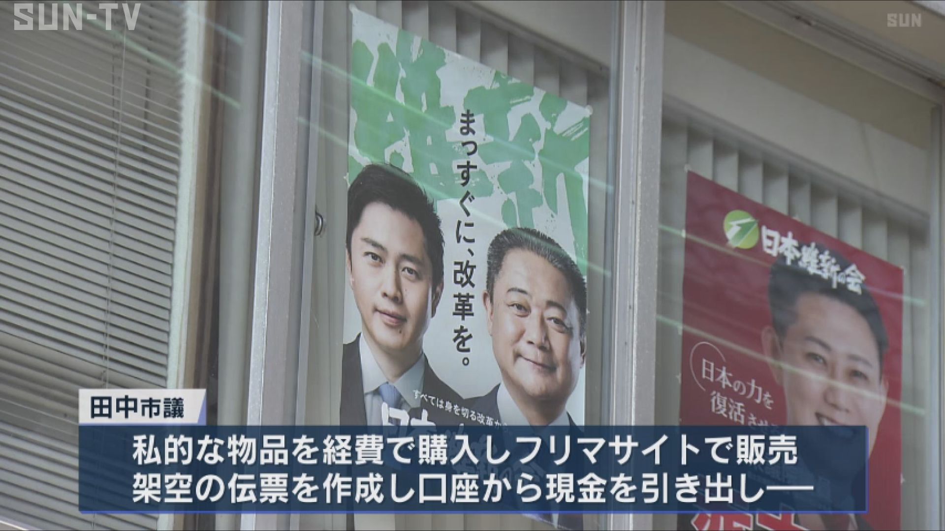 兵庫維新の会によりますと田中市議は、議員就任前、会の事務局で経理担当だった2019年1月から2022年4月ごろまでの間、私的な物品を経費で購入し、フリマサイトで販売したり、架空の伝票を作成し、会の口座から現金を引き出すなどして、少なくとも数十万円着服していたということです。