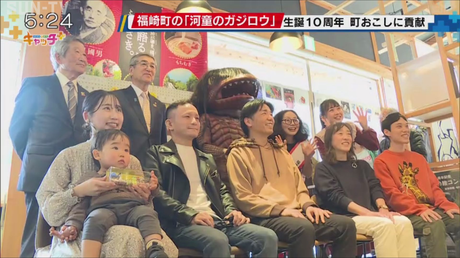 兵庫県福崎町で14日、妖怪をモチーフにしたキャラクター「河童のガジロウ」の生誕10周年を記念したセレモニーが開かれました。