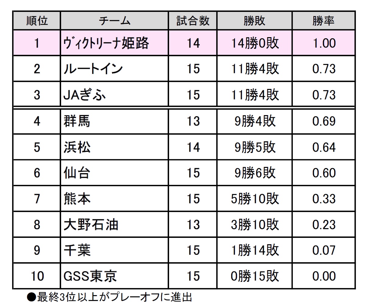 ヴィクトリーナは開幕から負け知らずの14連勝を達成した。